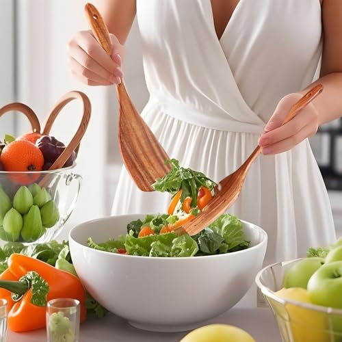 PREMIUM QUALITY: Spatula in this cooking utensil set are crafted from sturdy, naturally sourced acacia wood. The Wooden Kitchen Utensils Set includes a solid spatula and a slotted turner. These wooden utensils feature an elegant grip design and come in practical, ergonomic sizes to meet all your cooking needs.