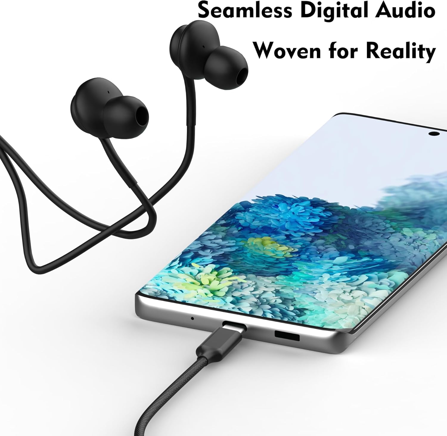 Plug-and-play with USB-C interface—no charging needed. Integrated remote for calls and volume. Fully compatible with Samsung Galaxy series and most Android phones.