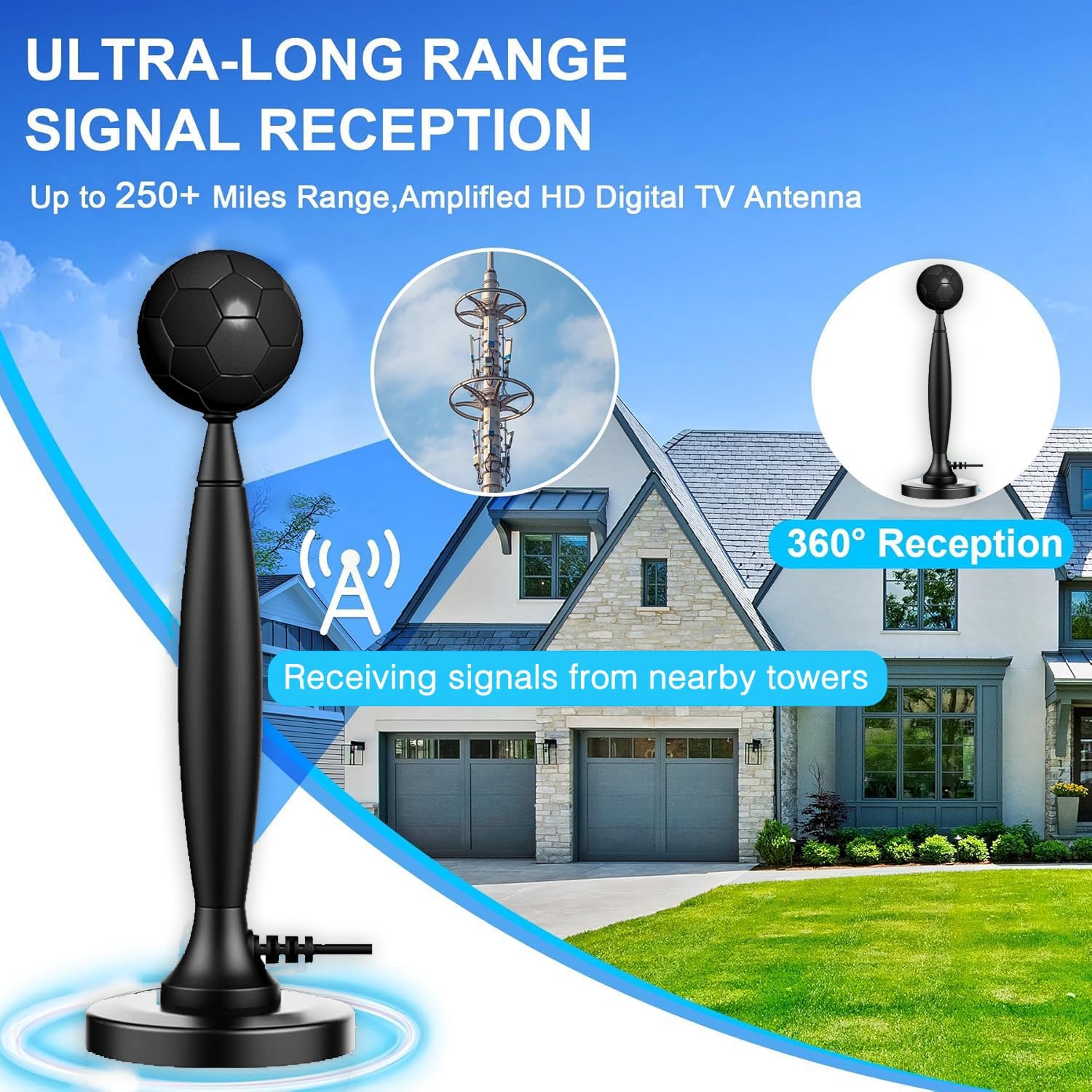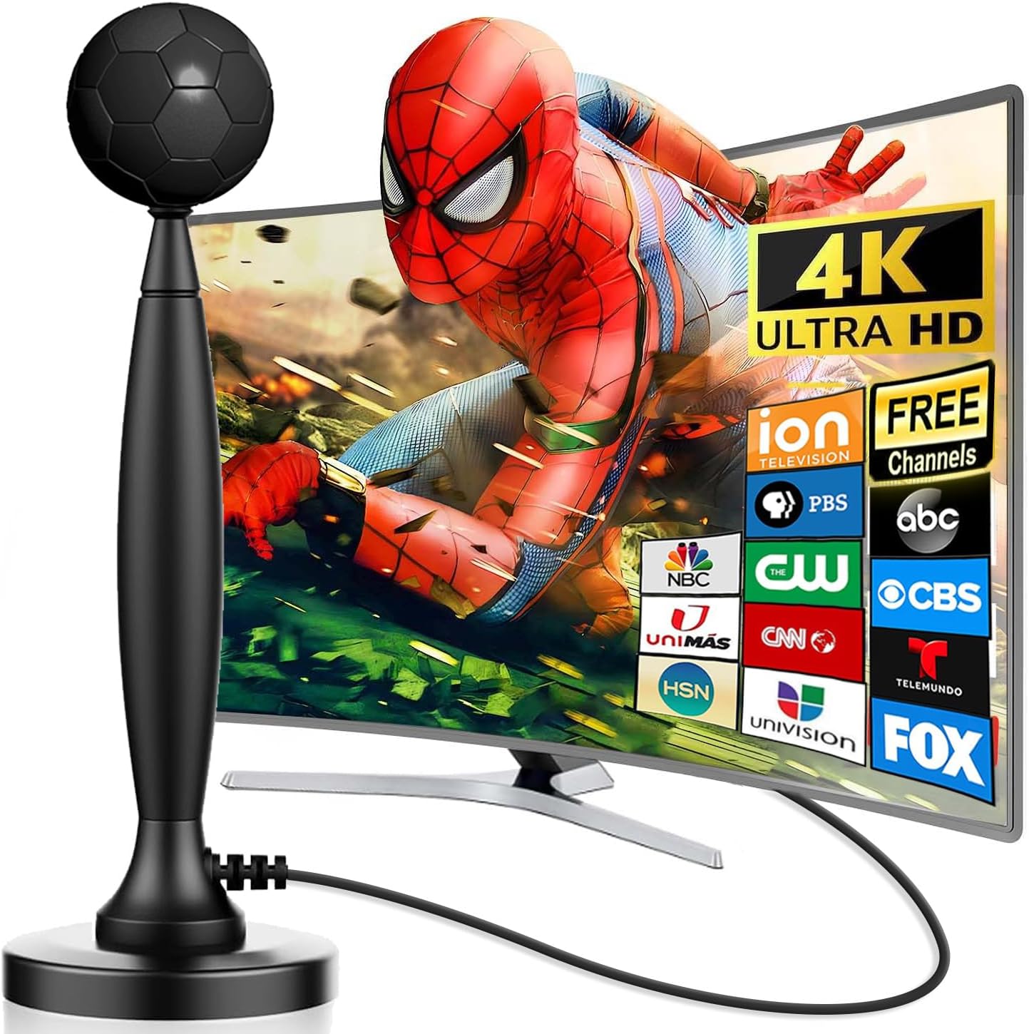 2025 TV Antenna for Smart TV, ATSC 3.0 Indoor HDTV Digital Antenna Supports 8k 4k for Free Local Channels,360° Reception Long Range Indoor Amplifier and Signal Booster, 16.5ft Coax Cable