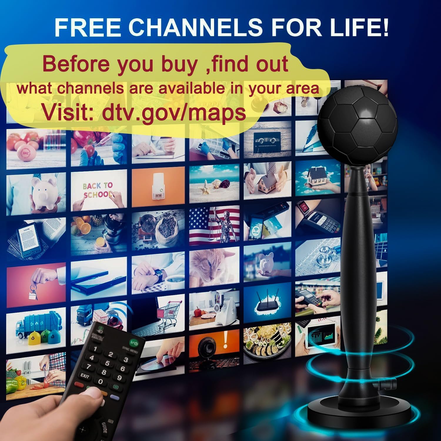 【Note】In most areas, you can adjust the switch of the signal amplifier to Short range, and you will have better viewing results. 1. The number of channels you can receive depends on what is being broadcast in your area. 2. Make sure your TV has a built-in HD tuner, otherwise, please buy a digital set-top box. There are also many factors that affect channel reception. Check Before Buying: * dtv.gov/maps: Find out where broadcast towers are located in your area. * Antenna Networks: Find out how many free channels are offered by local broadcasters. * TV Fool: Provides a list of available channels, coverage maps, and dynamic signal analysis graphs for any location.
