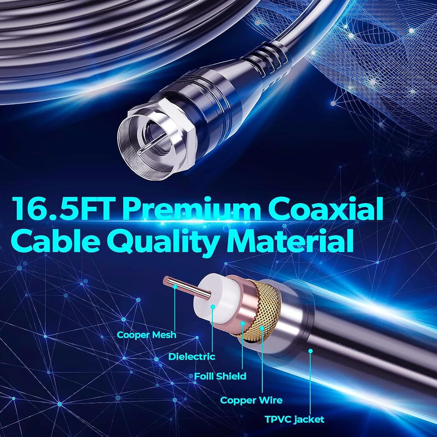 Set up your TV antenna effortlessly in minutes! No tools needed. Connect it to your TV, scan for channels, and enjoy stunning visuals, vibrant colors, and clear audio from your favorite shows. The 16.4ft coaxial cable offers flexible installation options for optimal reception.