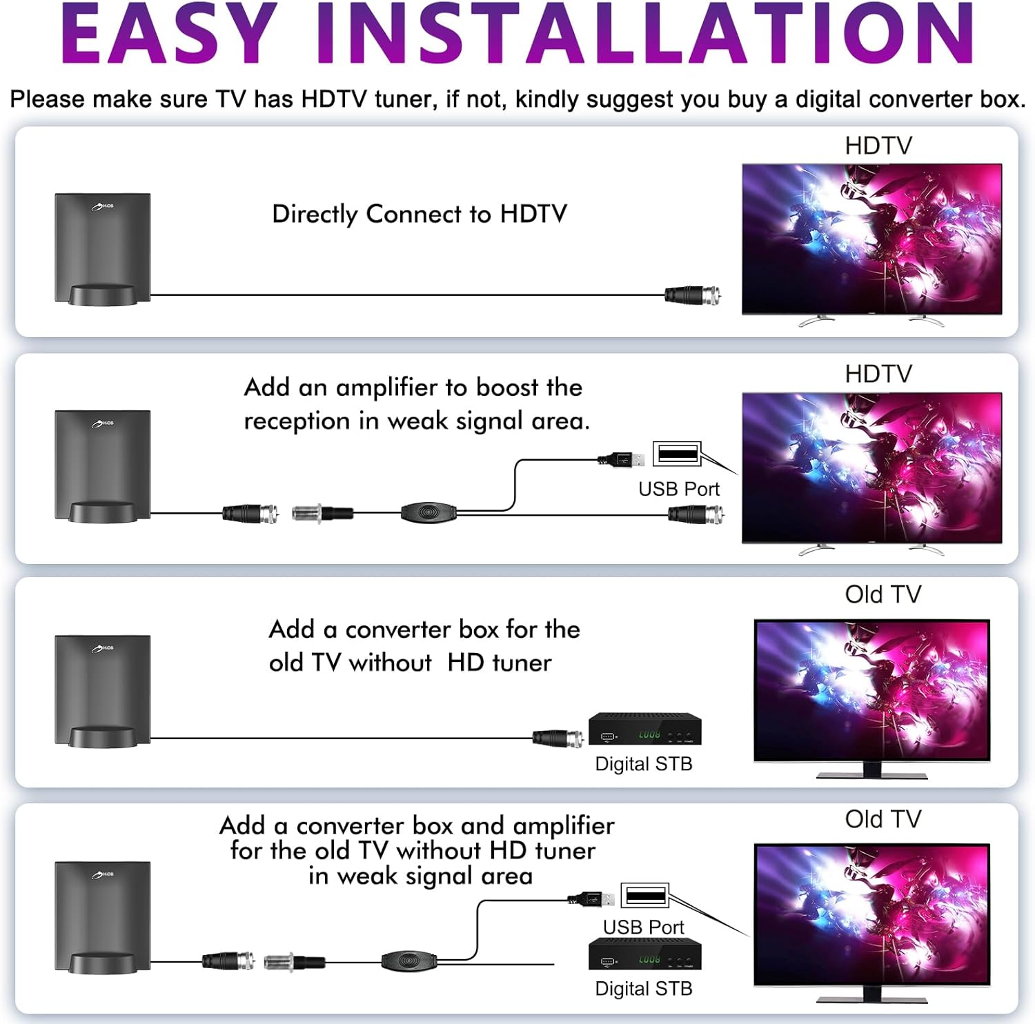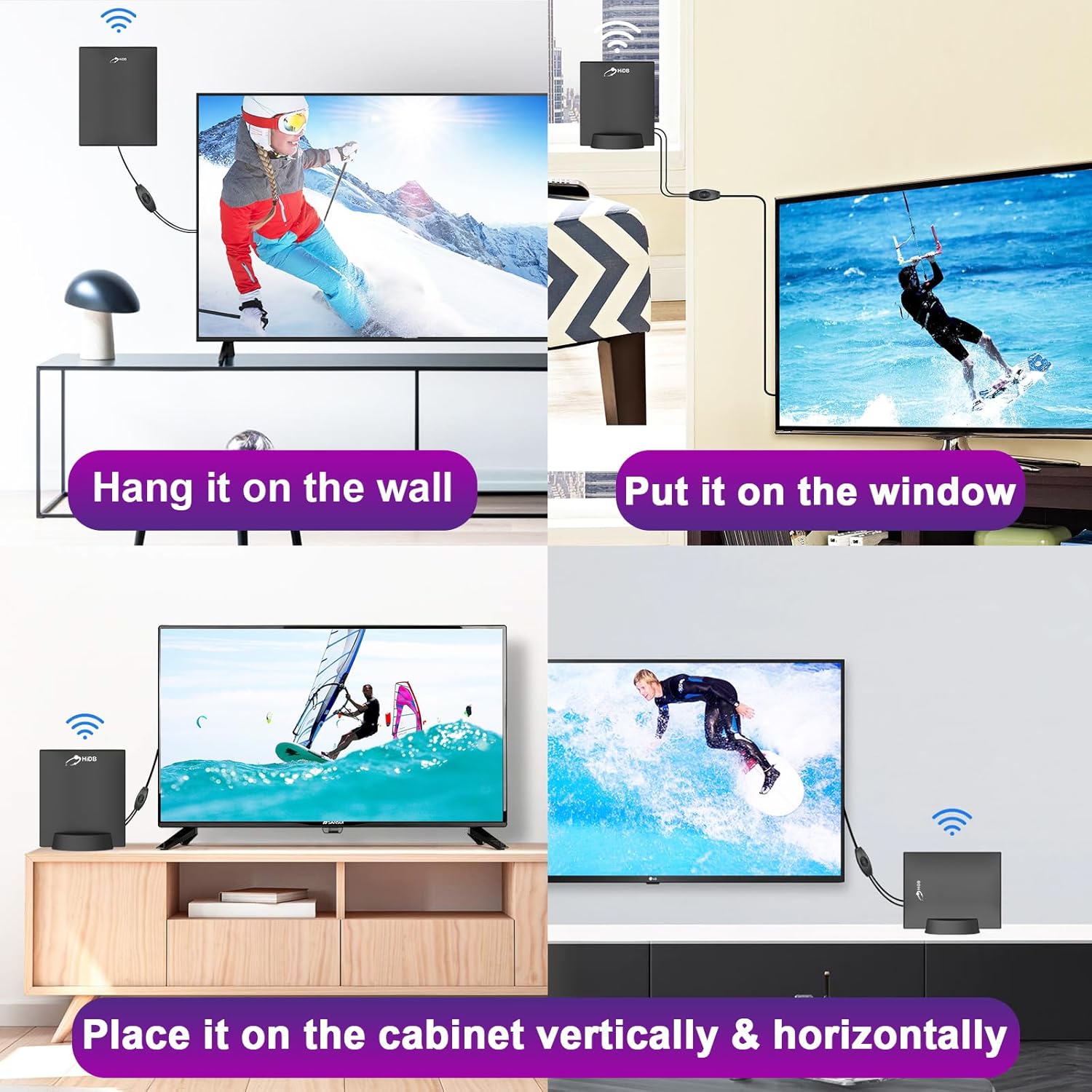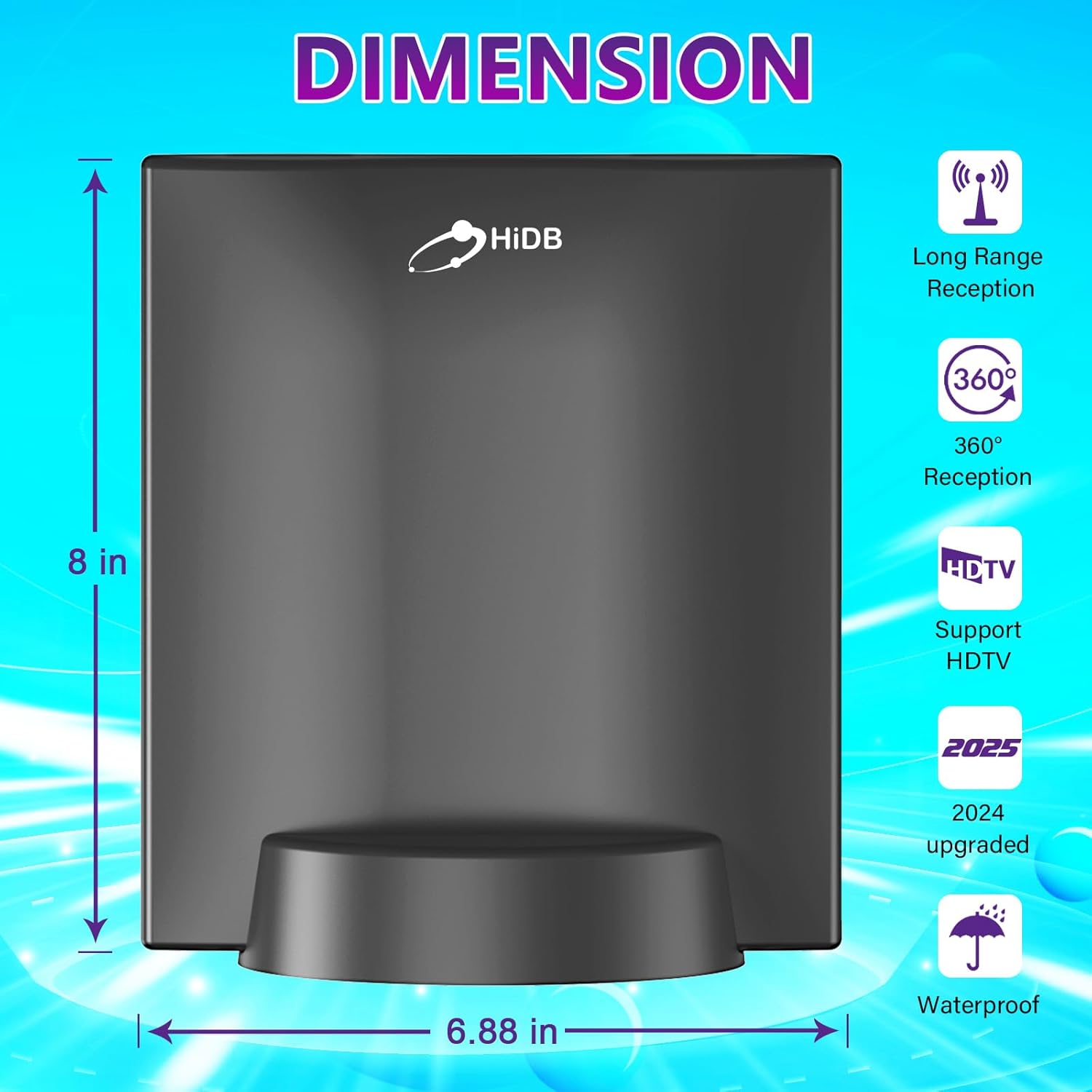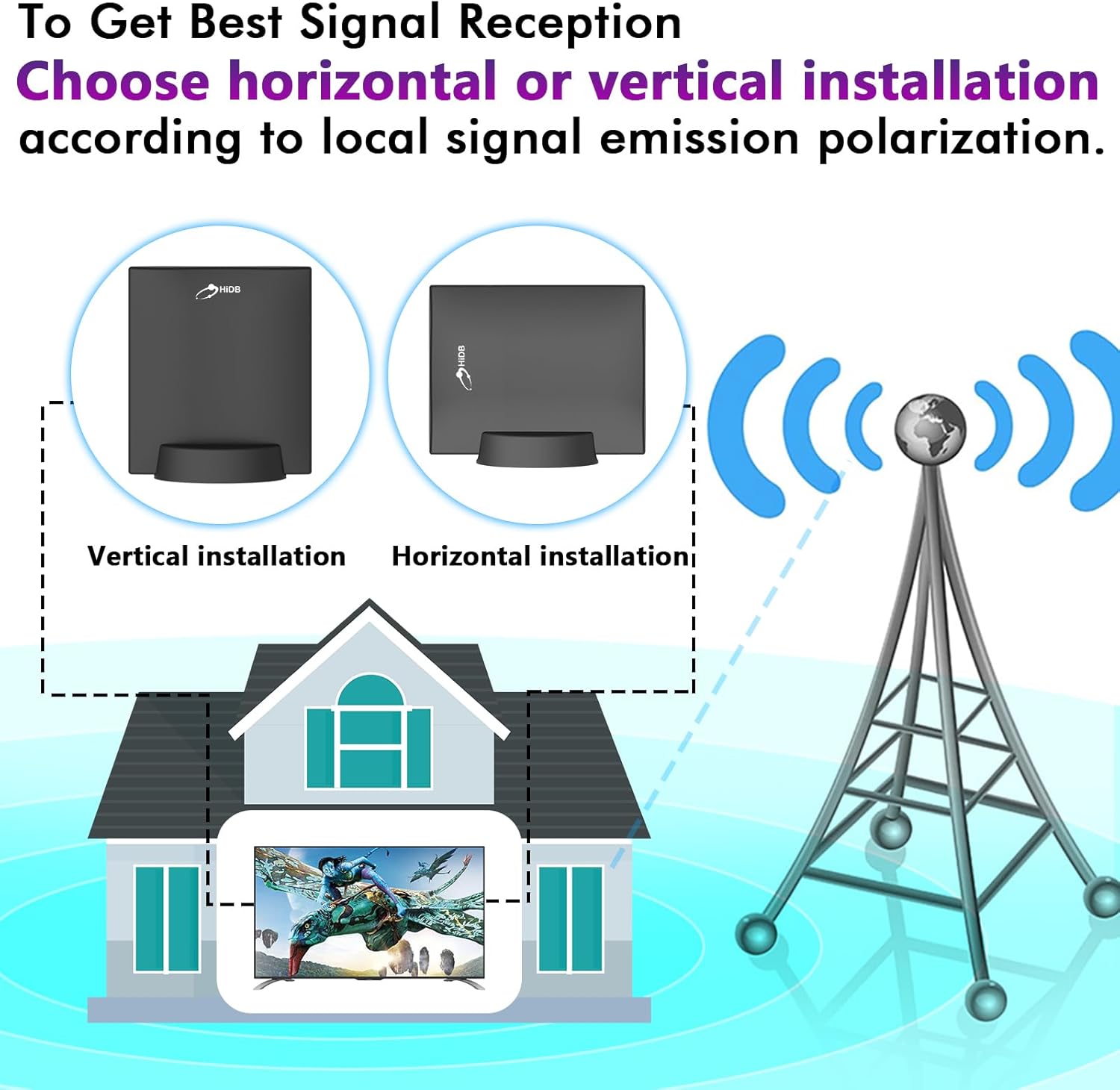 𝐏𝐨𝐰𝐞𝐫𝐟𝐮𝐥 𝐂𝐥𝐞𝐚𝐫 𝐒𝐢𝐠𝐧𝐚𝐥: Featuring a built-in smart IC chip and advanced filtering technology, the HIDB antenna eliminates interference from cellular and FM signals, delivering sharper images and reduced noise. Perfect for urban and rural areas alike, it ensures a stable and immersive viewing experience