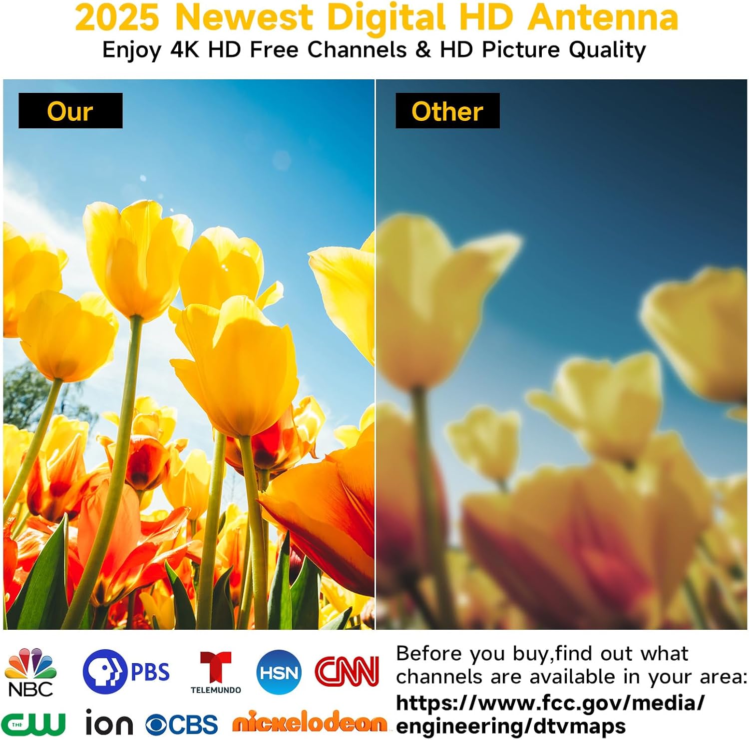 360° Reception Strongest Signal: STRONGER RECEPTION!This is 2025 newest digital antenna for tv,which has stronger and more stable reception signals! With 360 ultra strong reception capability, you can receive more channels, more stable signals, and clearer picture quality!