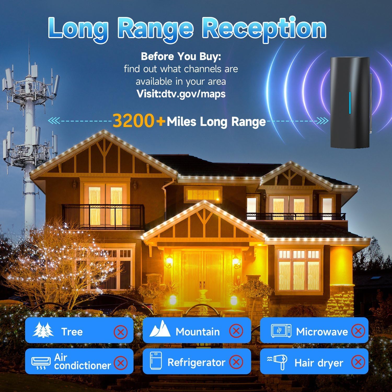 30𝟎𝟎+ 𝗠𝗜𝗟𝗘𝗦 𝗟𝗢𝗡𝗚 𝗥𝗔𝗡𝗚𝗘 𝗥𝗘𝗖𝗘𝗣𝗧𝗜𝗢𝗡: Say goodbye to signal interruptions! With our upgraded digital antenna for smart tv indoor, featuring a telescopic pole and double enhanced signal reception, you can enjoy 3000-miles range and 360° coverage. Simply adjust the length and tilt, allowing you to watch thousands of clear HD channels anytime, anywhere, for free