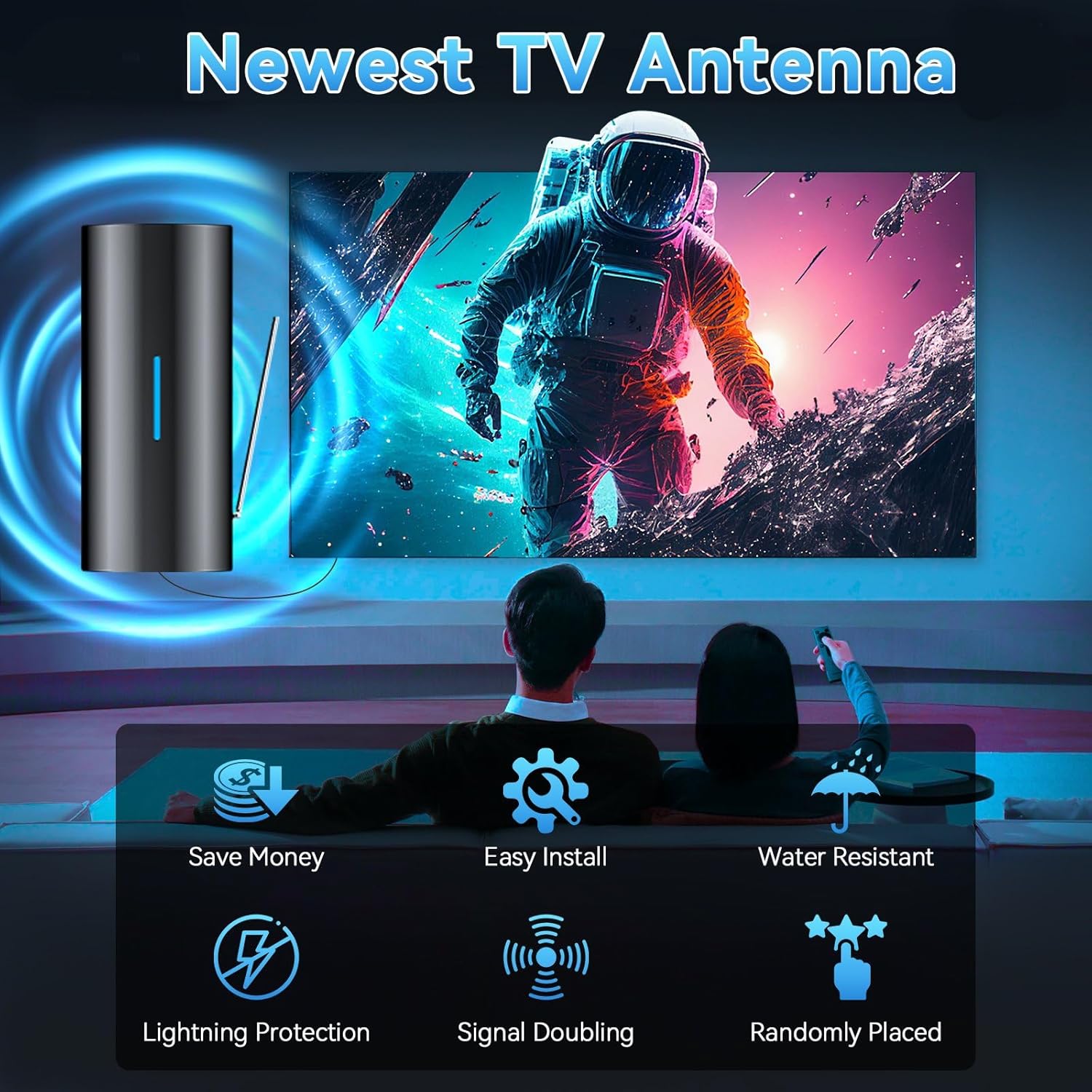 Qboy TV antenna, perfect for living rooms, bedrooms, RVs, cars, and more. It withstands storms, rain, snow, and hail for reliable performance in any condition. The 38-foot coaxial cable offers flexible installation. Enjoy more joyful moments with the BEST TV ANTENNA!