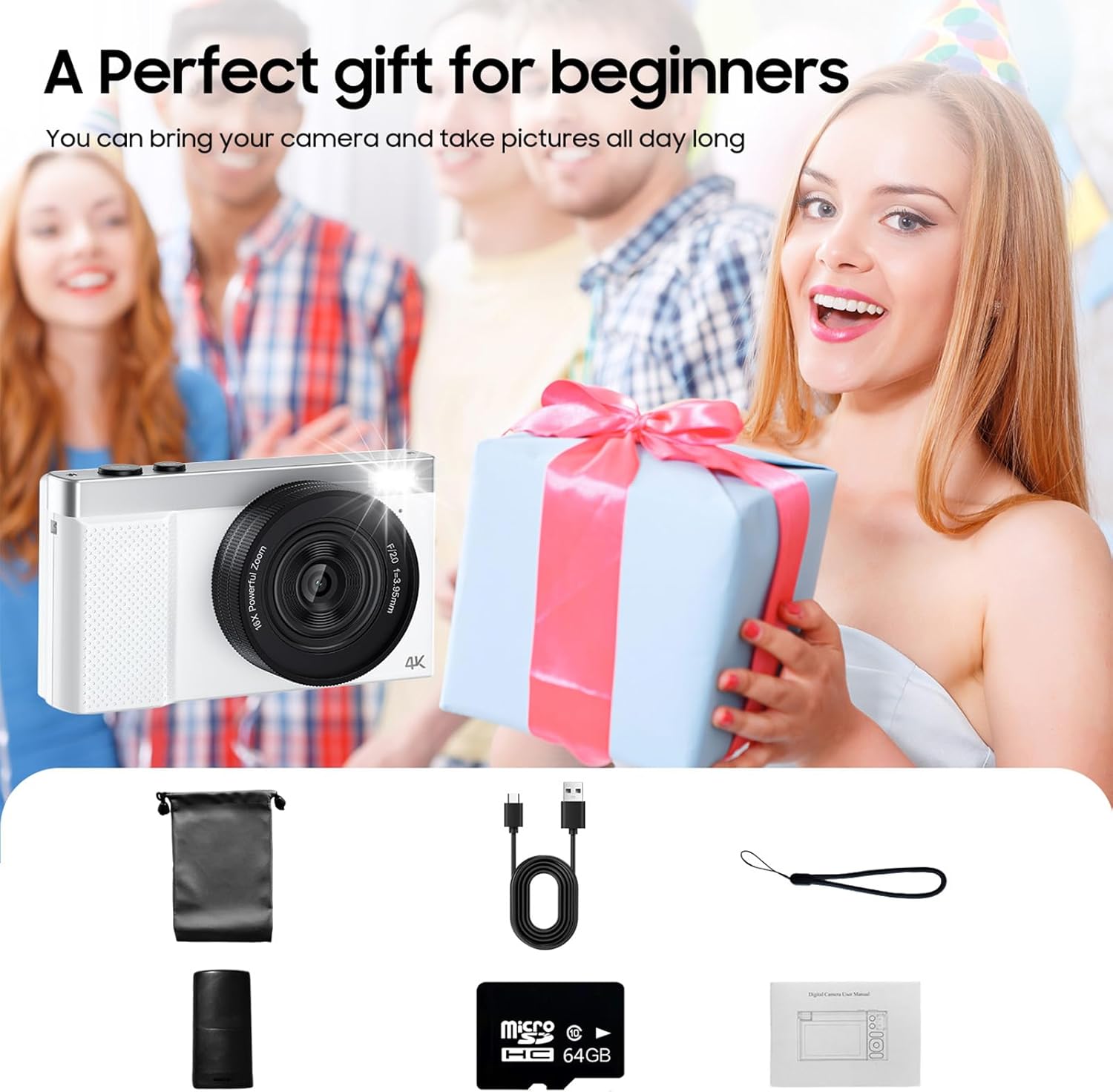 【Perfict Gift for Sharing Fun】 Fashion point and shoot digital camera for beginners and teens is full-featured and easy to use! The 4K photography camera makes everyone use it easily in home life, social software, travel, or festivals! Also, This compact camera is the perfect gift for yourself, lovers, friends, children, or parents for Valentine’s Day, Thanksgiving, Christmas, and birthday day!