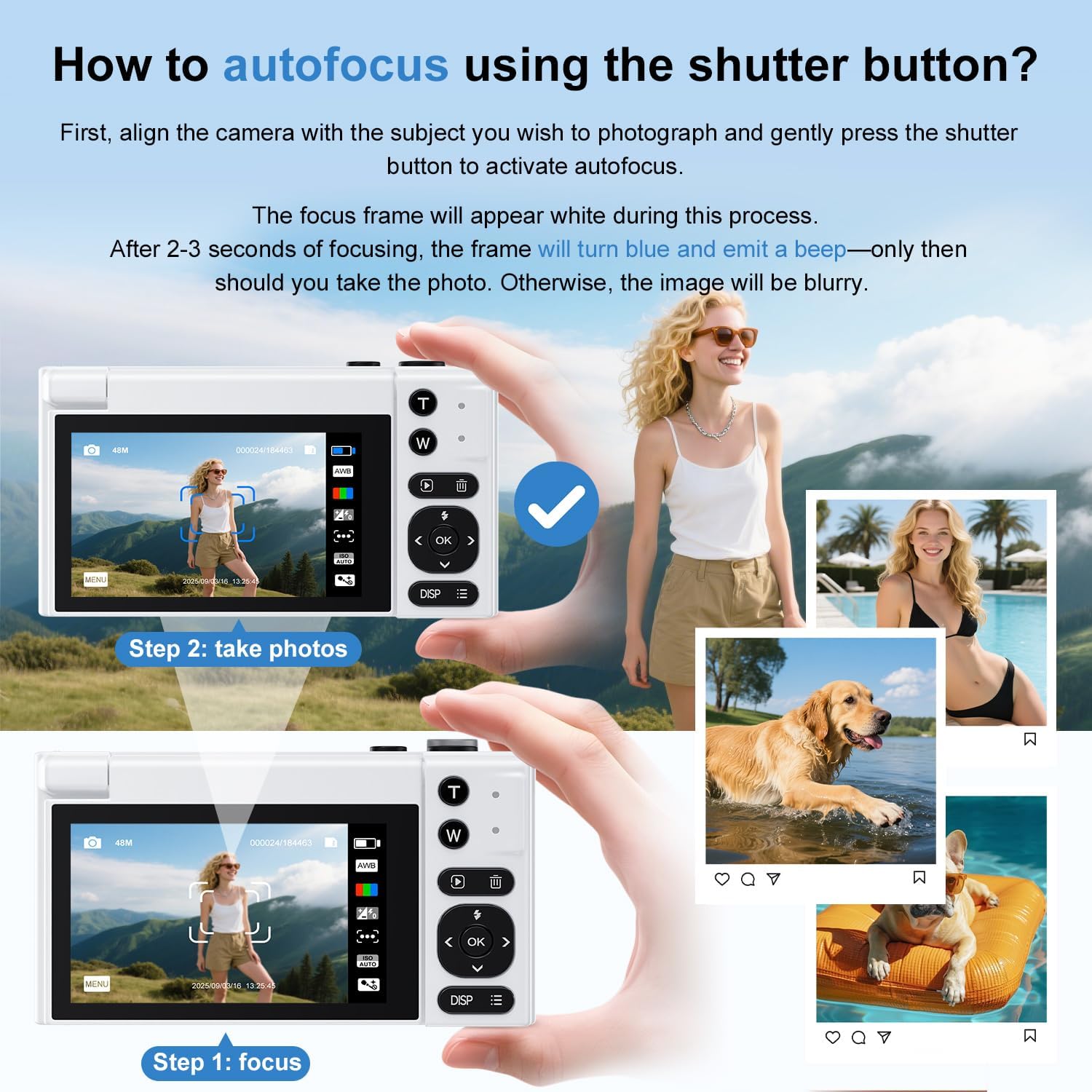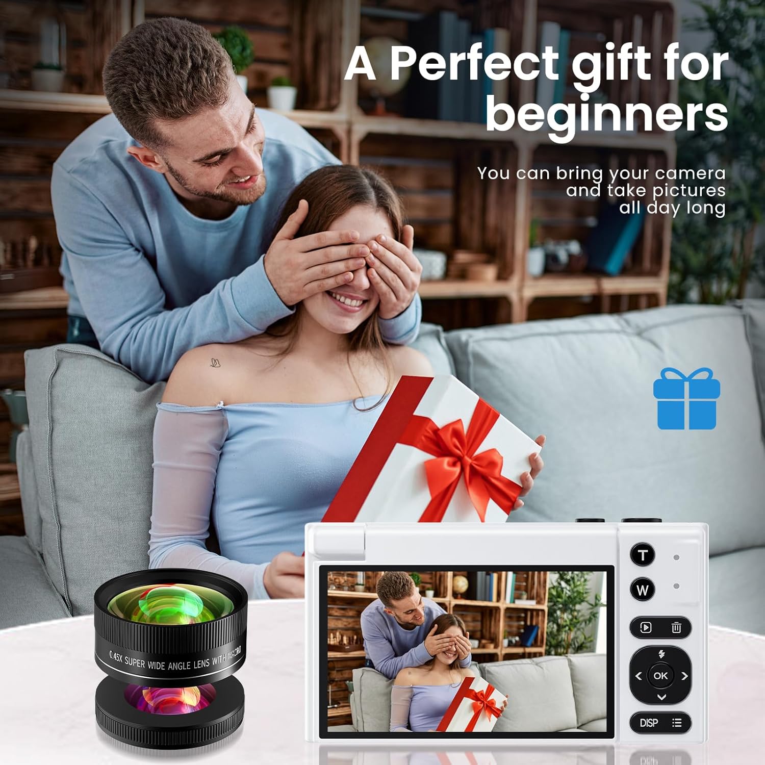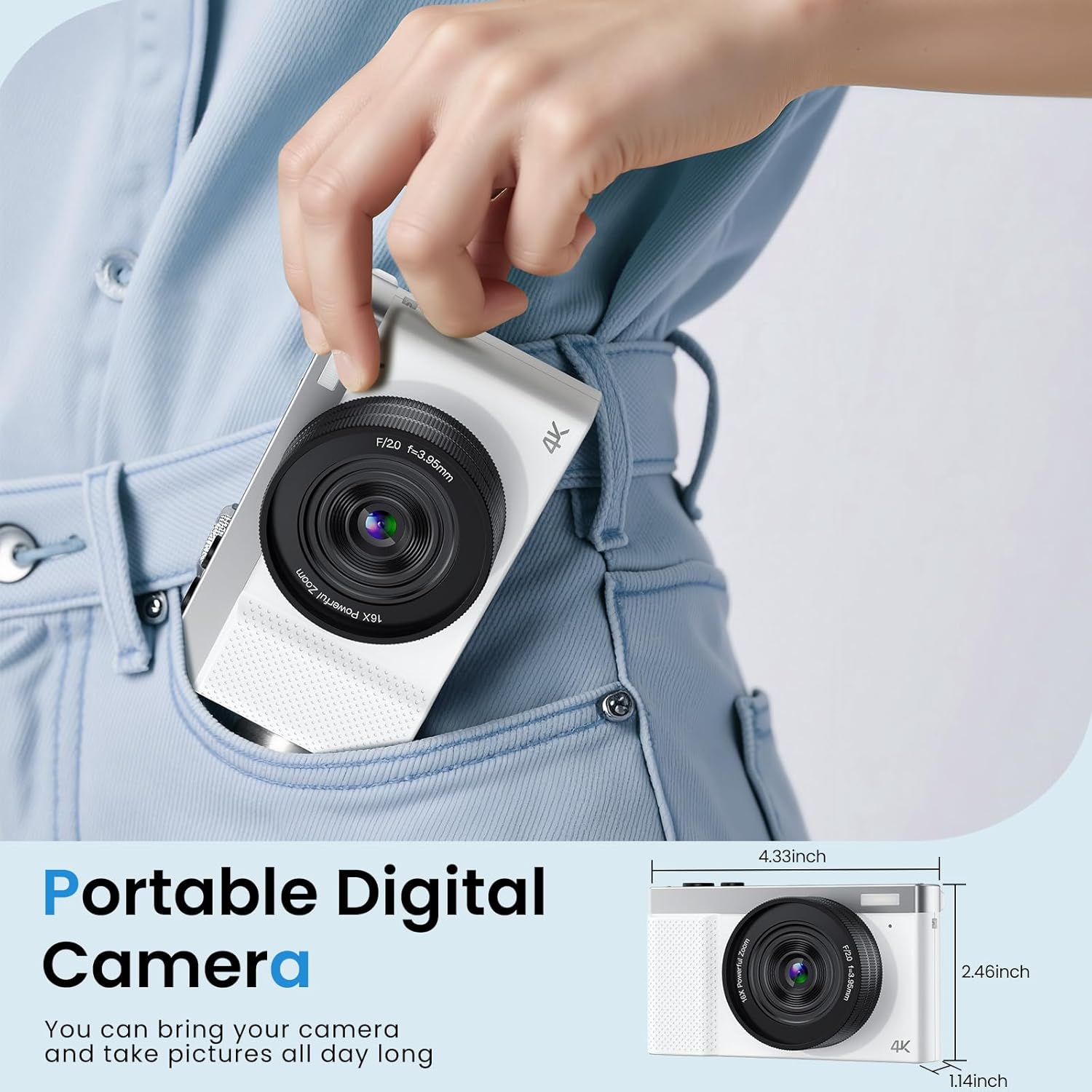 【180° Digital Camera with Flip Screen】Our 4k camera for photography offers a 3.0-inch IPS 180° flip screen, ideal for selfie enthusiasts and vlogging creation. Designed for travel and everyday use, this compact travel camera for pictures is built to last. Its small size and durable construction make it a reliable companion for capturing memories on the go.