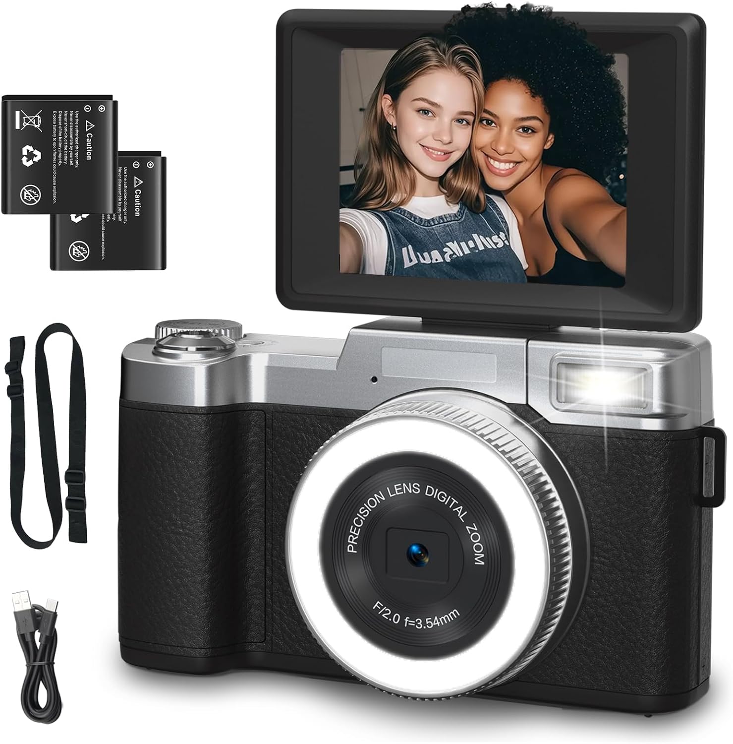 [ Multifunctions Digital Camera with Flip Screen ] – This vlogging camera has a 3” flip screen that can be rotated 180 degrees to meet your shooting needs in different poses and realize low-camera shooting, making selfie shooting easier and more fun. The photography camera has multiple functions including time-lapse, loop recoding, self-timer, interval photo, beauty function and more.