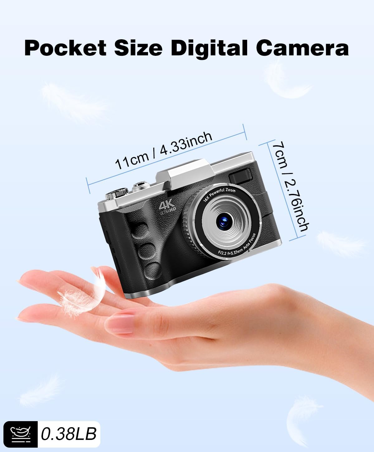 【16X Digital Zoom & Multifuctional】This compact digital camera features a 16x zoom, making it ideal for capturing distant subjects. This 4k travel camera also comes equipped with anti-shake, face detection, smile detection, continuous shooting, and flexible subject tracking, serving as the perfect choice for documenting family gatherings, friend meetups, and other joyful moments.