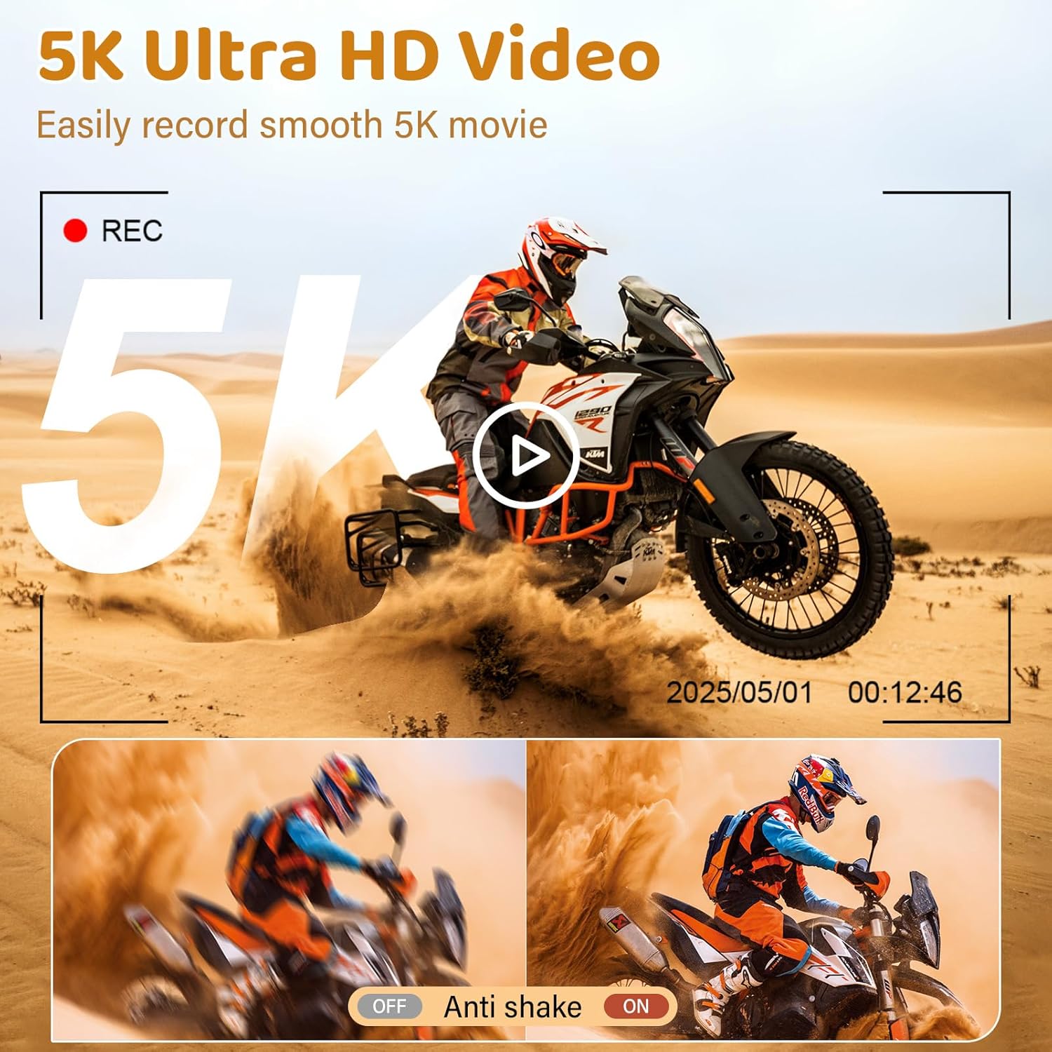 【Point and Shoot Camera Easy to Operate】Designed for effortless use, this 5K digital camera is perfect for beginners, kids, teens, students, and seniors alike. Intuitive buttons and user-friendly menus make capturing moments as easy as pressing a button.