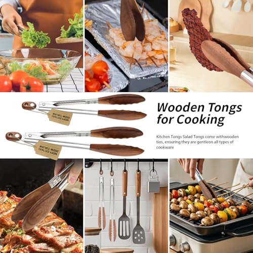 Specification: 5Pcs Walnut Wooden Tongs For Cooking, 12 & 15 Inch Nonstick Cooking Tongs & Salad Tong with Walnut Wood Tip and with Hanging Hole, Heat Resistant Toast Tong for Serving Food, BBQ, Tossing Salad