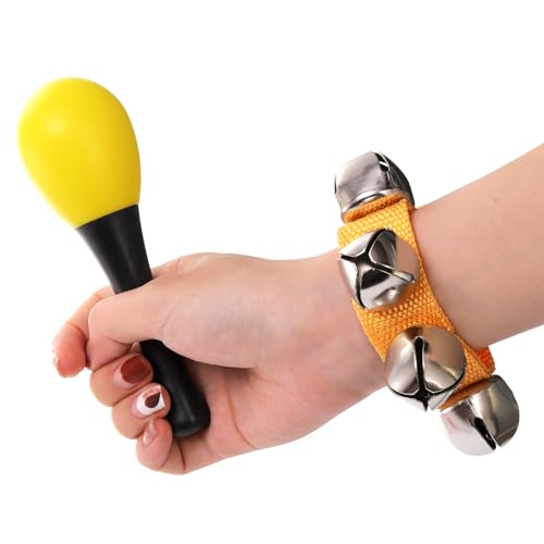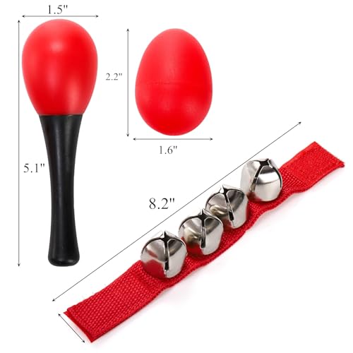 Safe and Durable Material: Made of high quality plastic filled with mini iron balls, egg and sand hammer shaker are non toxic, tasteless, light and reliable, no burrs, safe and comfortable for you and your children to hold. The wristband of jingle bell is made of nylon material, which is durable and not easy to break.