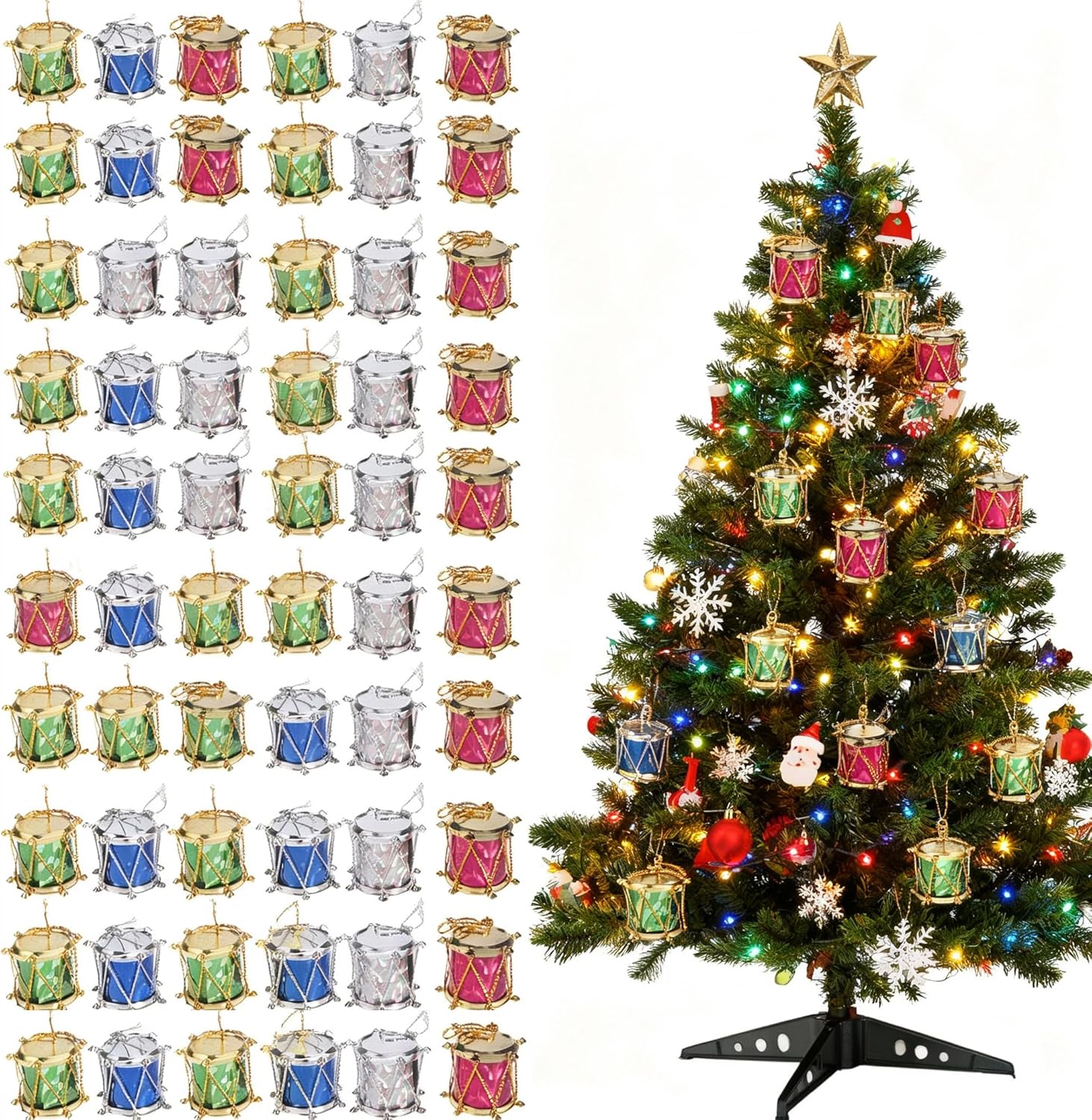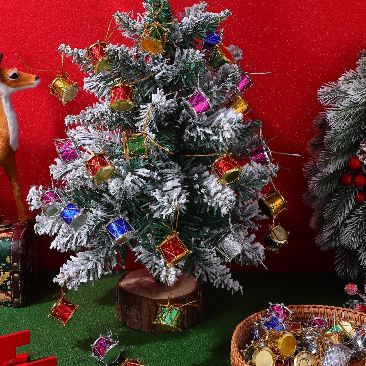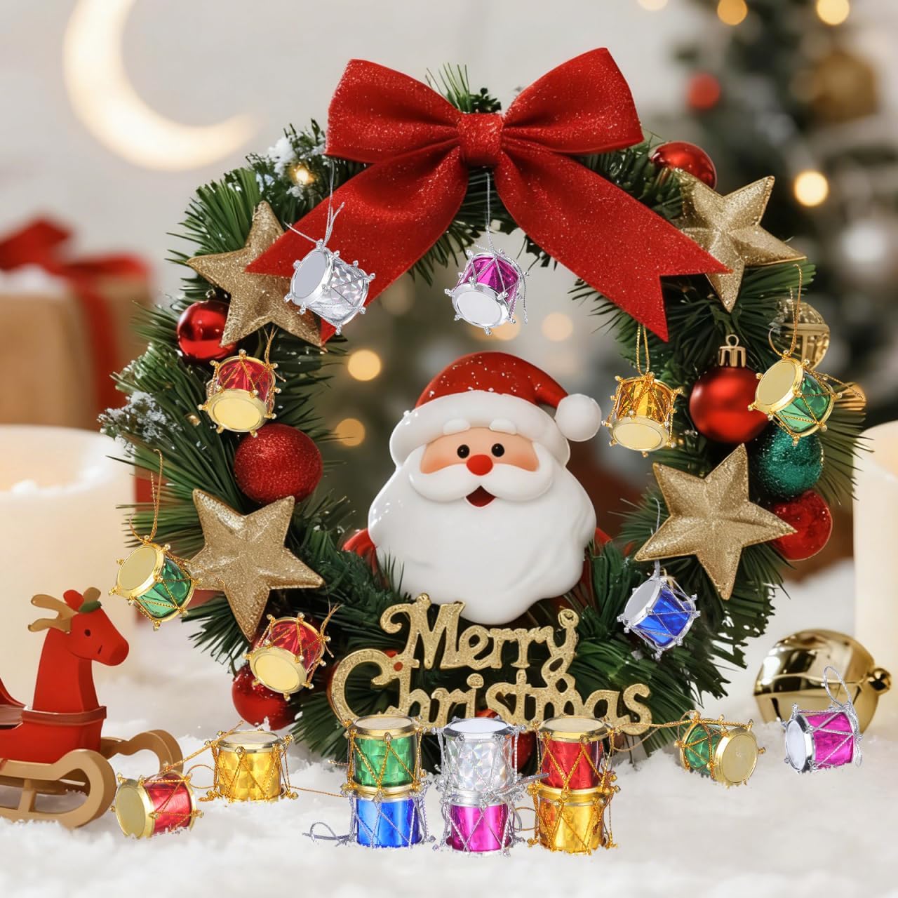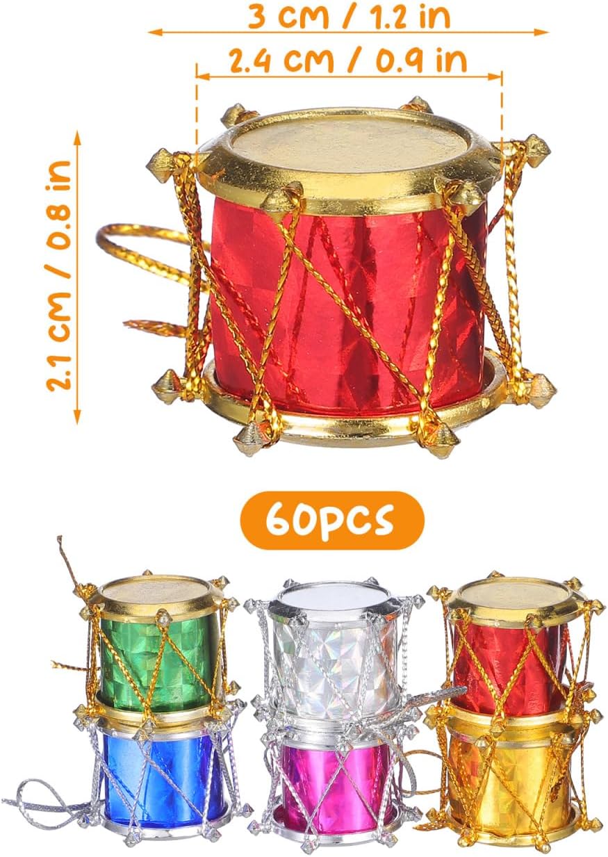 This is a set of 60 pcs mini Christmas drum decors, which are made with premium and durable plastic material, durable for repeated use. Bright and beautiful color, which can create a happy and atmosphere. Make your life unforgettable and with these beautiful drums.