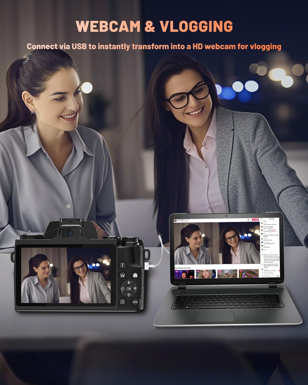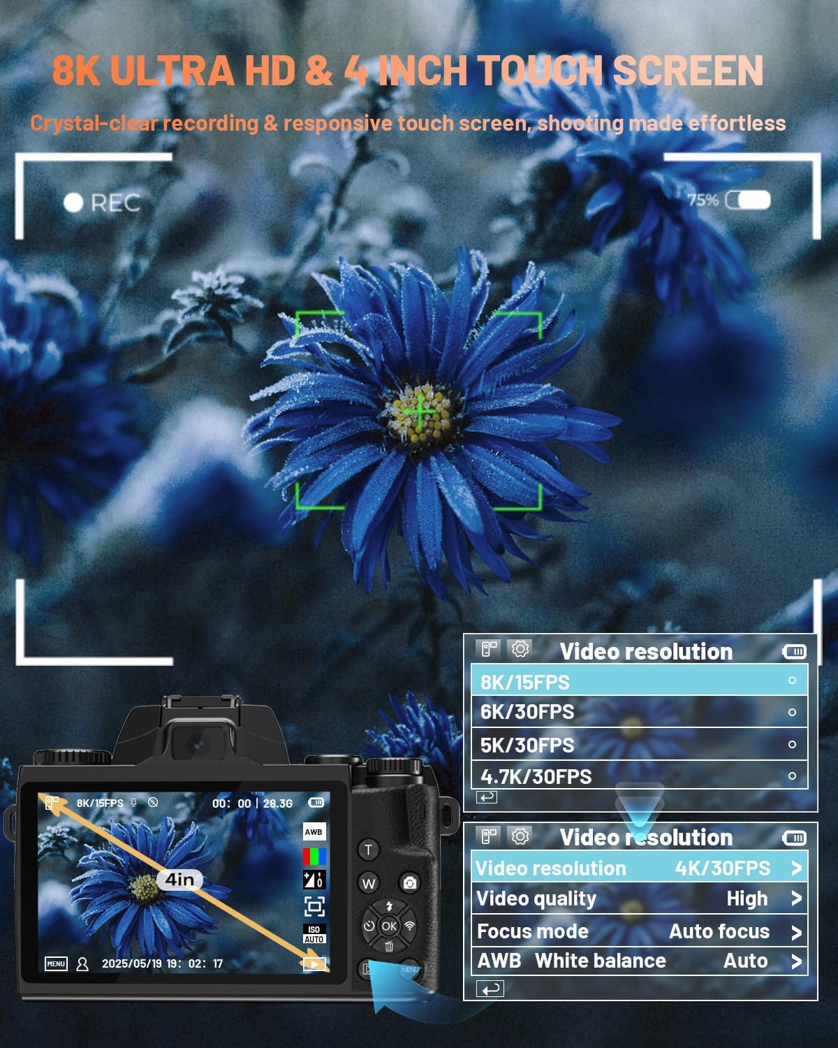 【8K & 64MP Cameras for Photography】This digital camera offers 8K video resolution and 64 megapixels, capturing stunning high-resolution photos and videos with fine detail. It’s ideal for both high-quality photo shoots and video blogging