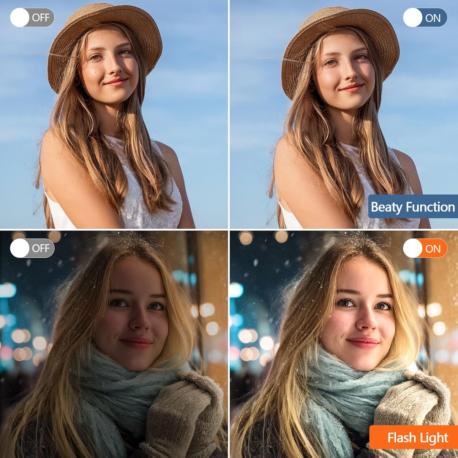 【Multiple Functions】 9 shooting modes and 18 selectable filters for most shooting scenarios; 64mp wifi digital cameras with flash, beauty function, continuous shooting, auto photo and time-lapse self-timer (3/5/10/20S), it can help you take beautiful portrait photos, perfect for content creators and beginners