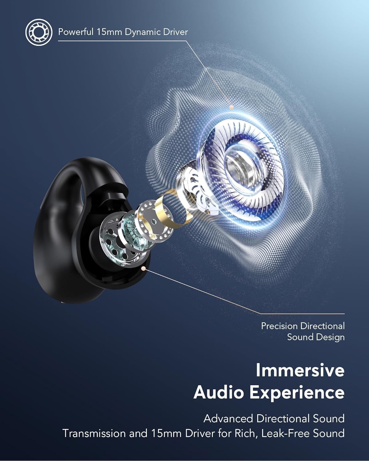 [Open-Ear Design for Comfort] Made of lightweight PC material, each earbud weighs only 8g and is IPX7 waterproof. The soft silicone ear hooks provide a secure fit, making them ideal for sports, workouts, and daily activities. Enjoy music while staying aware of your surroundings with these versatile earbuds.