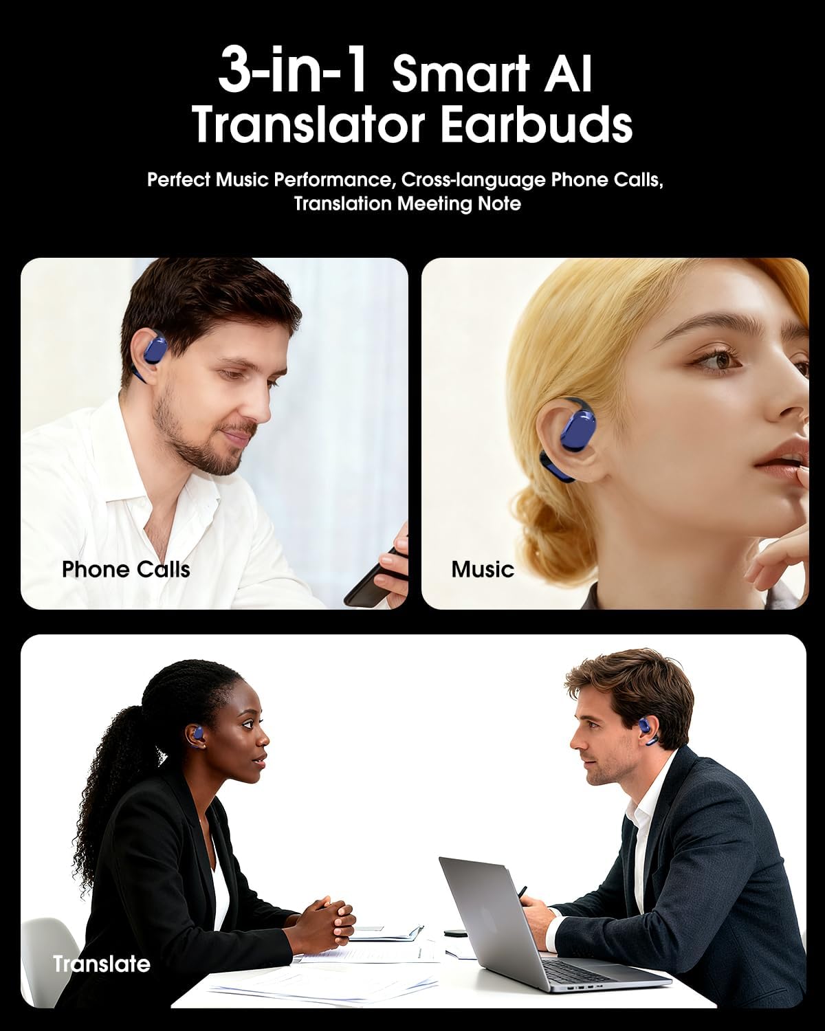 3-in-1 HD Stereo Earbuds: Experience crystal-clear audio with our all-in-one device that seamlessly combines real-time translation, high-fidelity music playback, and clear phone calls. Ensuring your calls and translations remain sharp and intelligible even in bustling environments. Perfect for business travel, daily commutes, or focused listening.