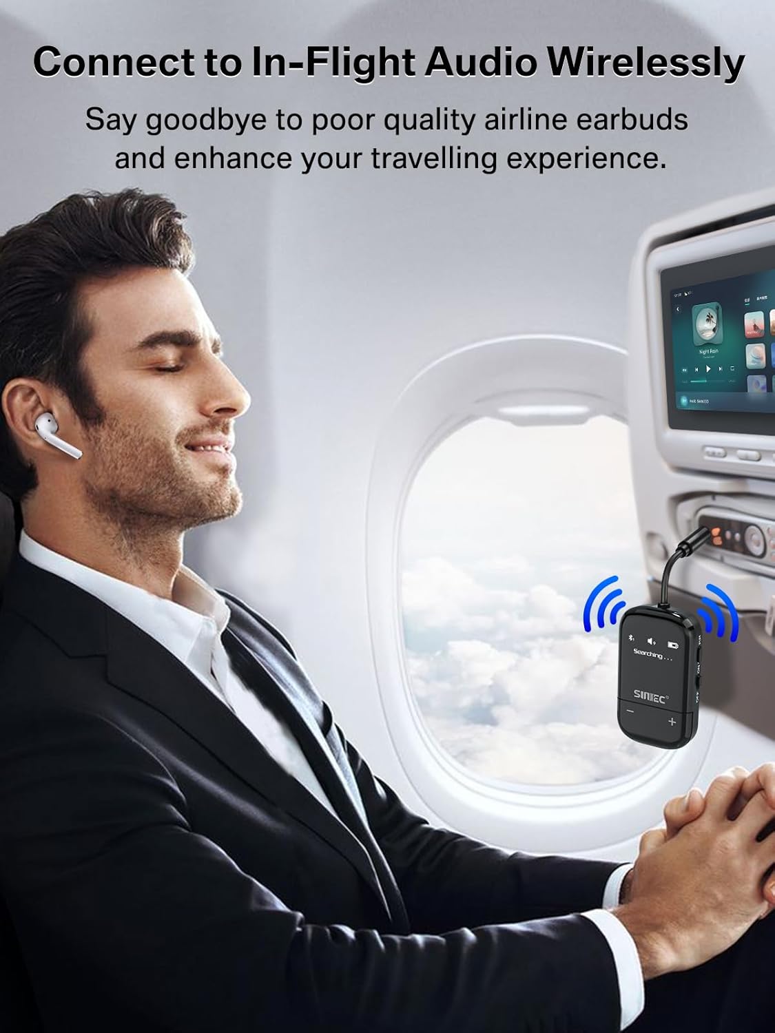 Sunitec BT300 Airplane Bluetooth Transmitter for Audio Sharing to 2 Airpods bluetooth adapter for airplanebluetooth adapter for airplane