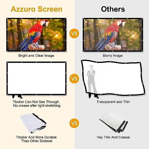 [Thickened Projection Screen]: Azzuro outdoor projection screen boasts movie screen sheet crafted from premium-quality fabric. The increased thickness guarantees a seamless surface and unparalleled projection clarity, immersing you in your movies with breathtaking detail.