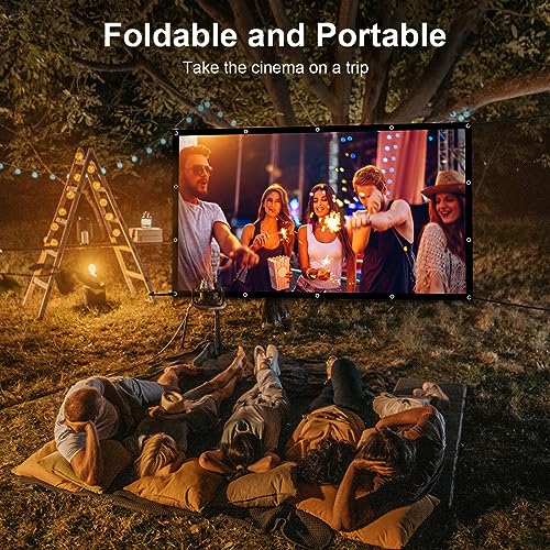 [Multi-Scene Usage]: Projector screen supports a variety of display ratios. With a wide viewing angle of up to 160°, This means that you can enjoy a clear and crisp image no matter what type of projector you have. An immersive movie night will make your family unforgettable. It’s perfect for any scene, from home theaters to outdoor parties to office presentations.