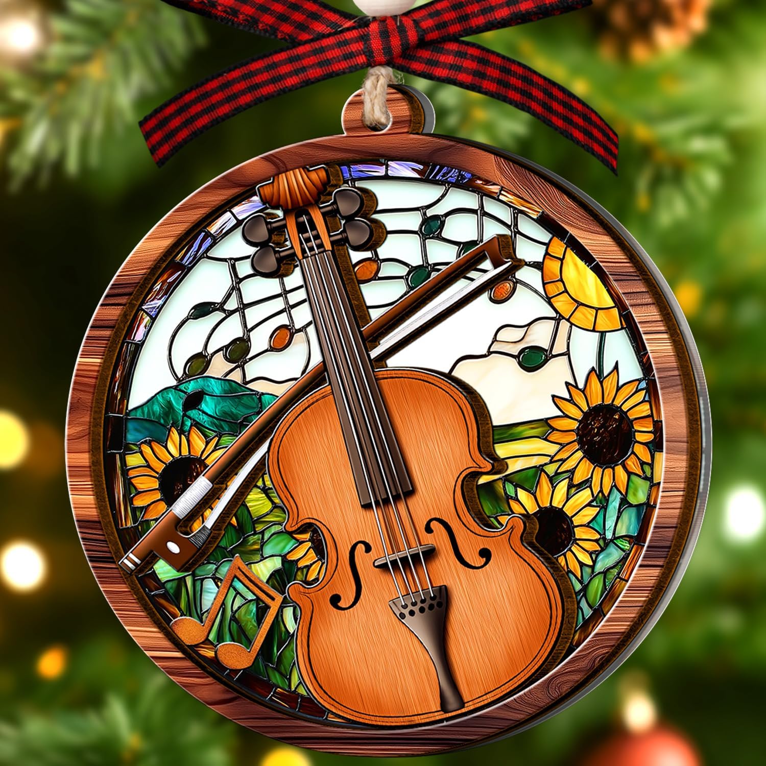MULTI-LAYER WITH 2 MATERIALS: This multi-layer cello ornament is crafted from durable wood and acrylic, featuring a laser-cut design that adds depth and intricate details, making it a standout piece for your tree.