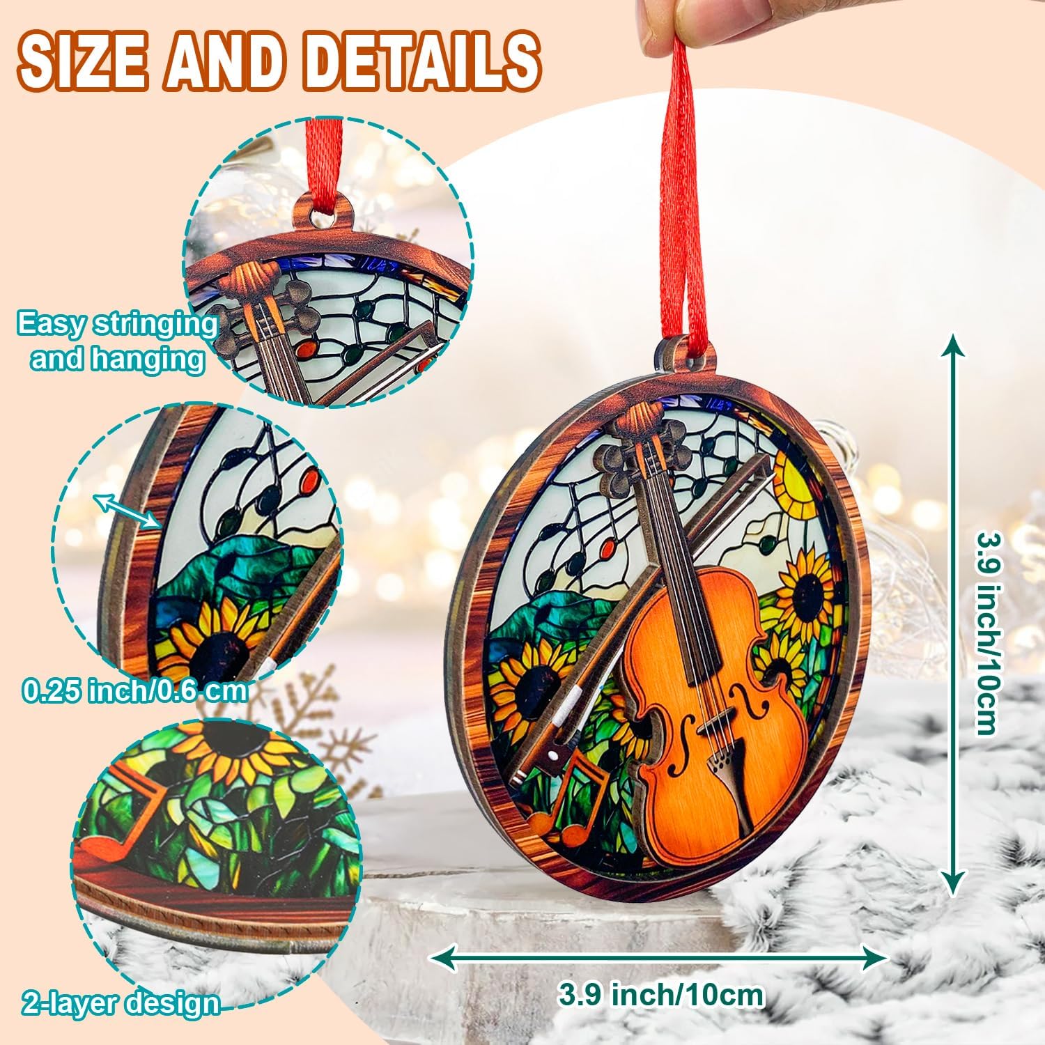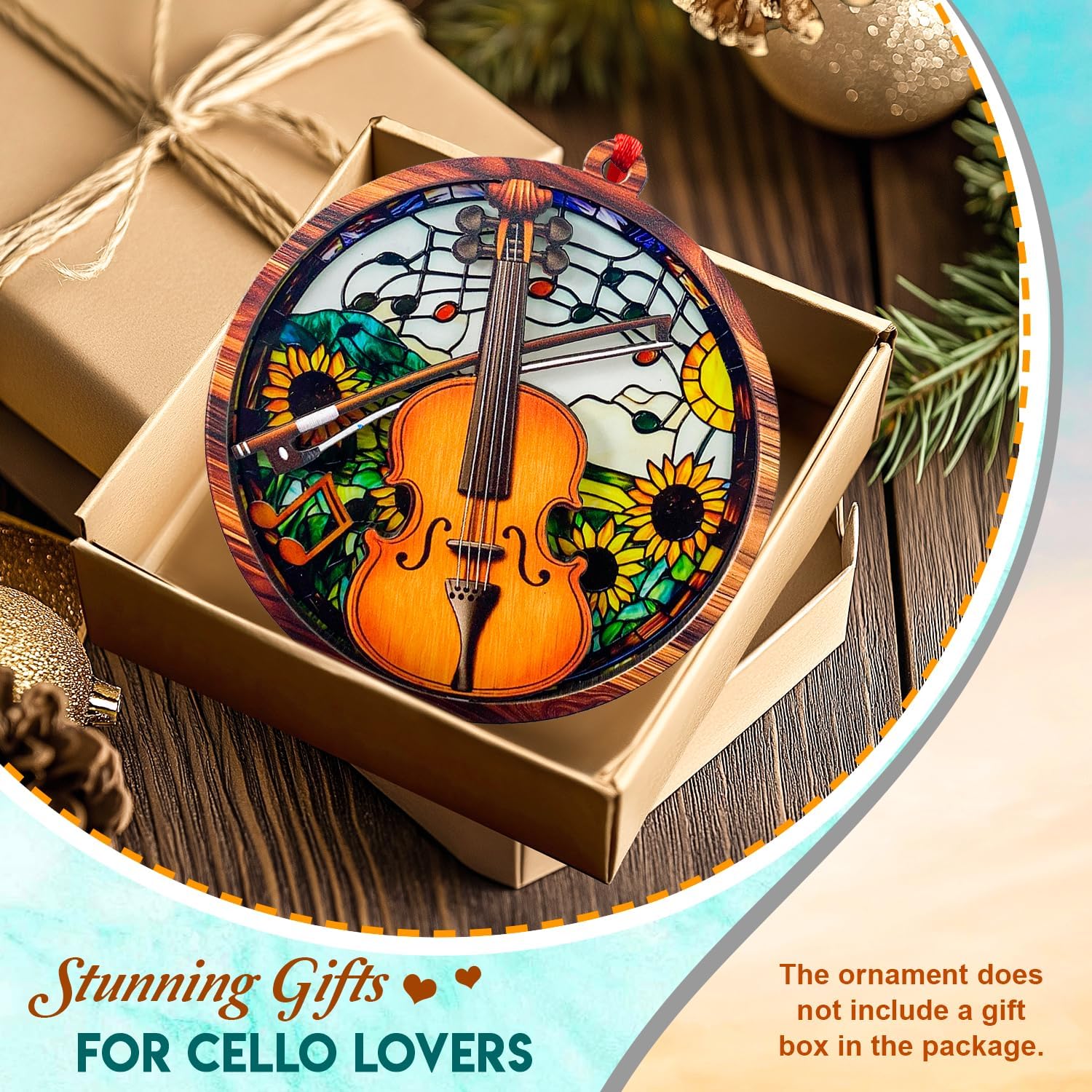 BEAUTIFUL CELLO ORNAMENTS FOR CHRISTMAS TREE: Add a harmonious and classical touch to your Christmas tree with this vibrant 2-layer wood & acrylic cello ornament. These cello ornaments for Christmas tree bring the beauty of string instruments into your festive decor.