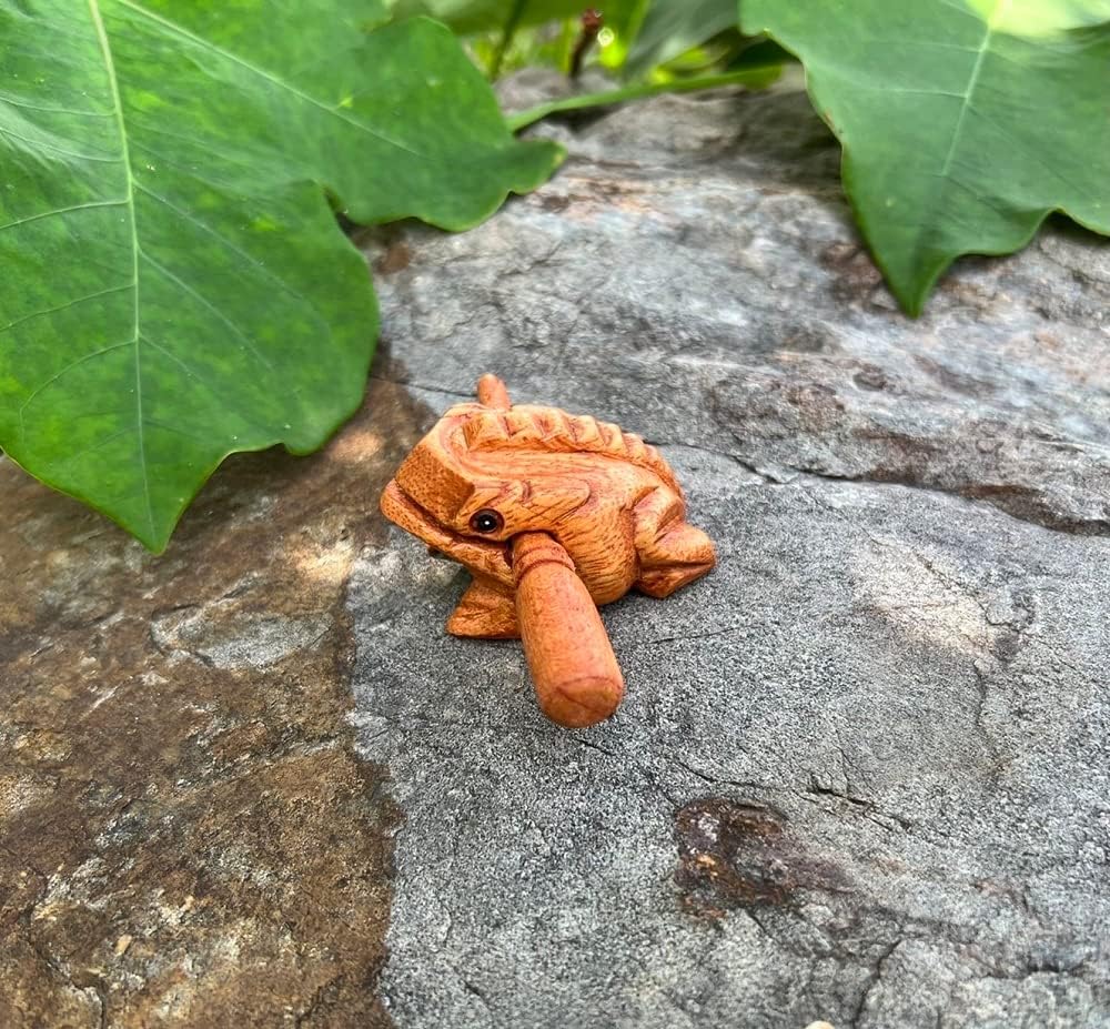 Customers find the wooden frog well-crafted and appreciate its sound quality, noting it sounds like a real frog. They describe it as cute, with one customer mentioning it works well as a decoration on their mantle. The size receives mixed feedback, with several customers finding it small.