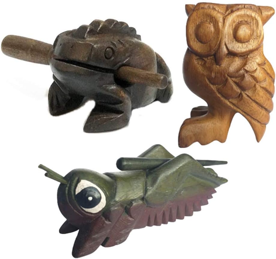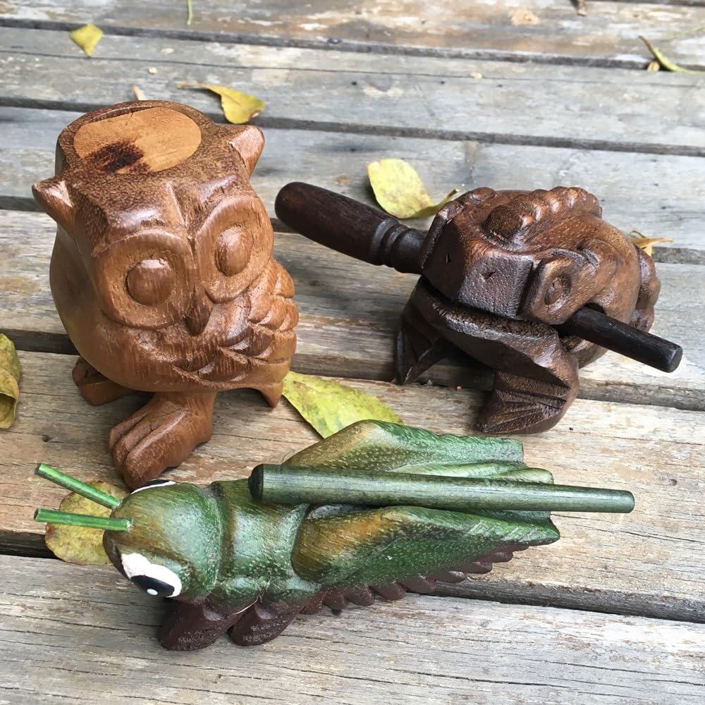 Cozinest Wooden Percussion Frog, Cricket and Owl Set 3 Musical Instrument Products From Thailand Home Office Decoration Nice Gift (Medium)