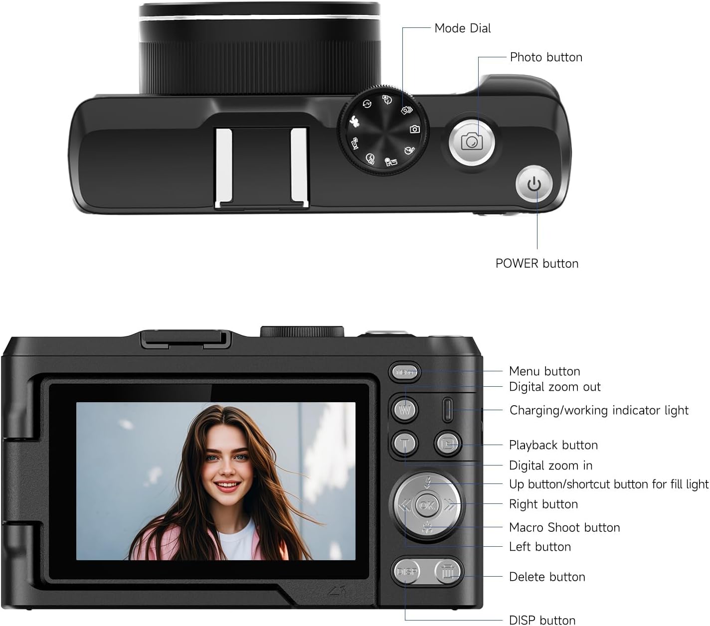 【Portable & Perfect Gifts】Compact but powerful, this small digital camera is very suitable for entry-level users, even beginners and amateurs can take stunning photos! This portable camera is a perfect Christmas gift, birthday gift, and holiday gift for teens, kids, and students, boys and girls.