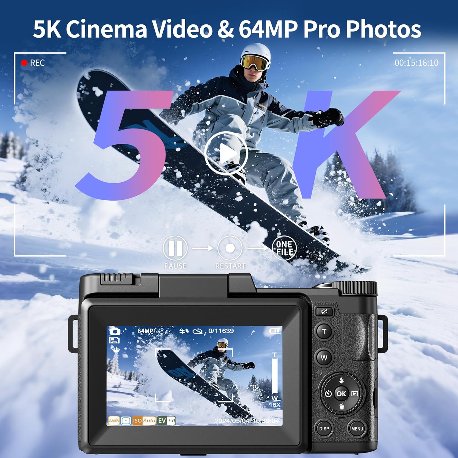【64MP Pro Photos & 5K Cinema Video】: Capture life’s moments in breathtaking precision with our advanced 64MP digital camera, delivering ultra-high-resolution photos and 5K UHD video for professional-grade clarity. Perfect for vloggers, travelers, and photography enthusiasts, this compact camera ensures every shot—whether a sweeping landscape or a close-up portrait—is rich in detail and vibrant color.