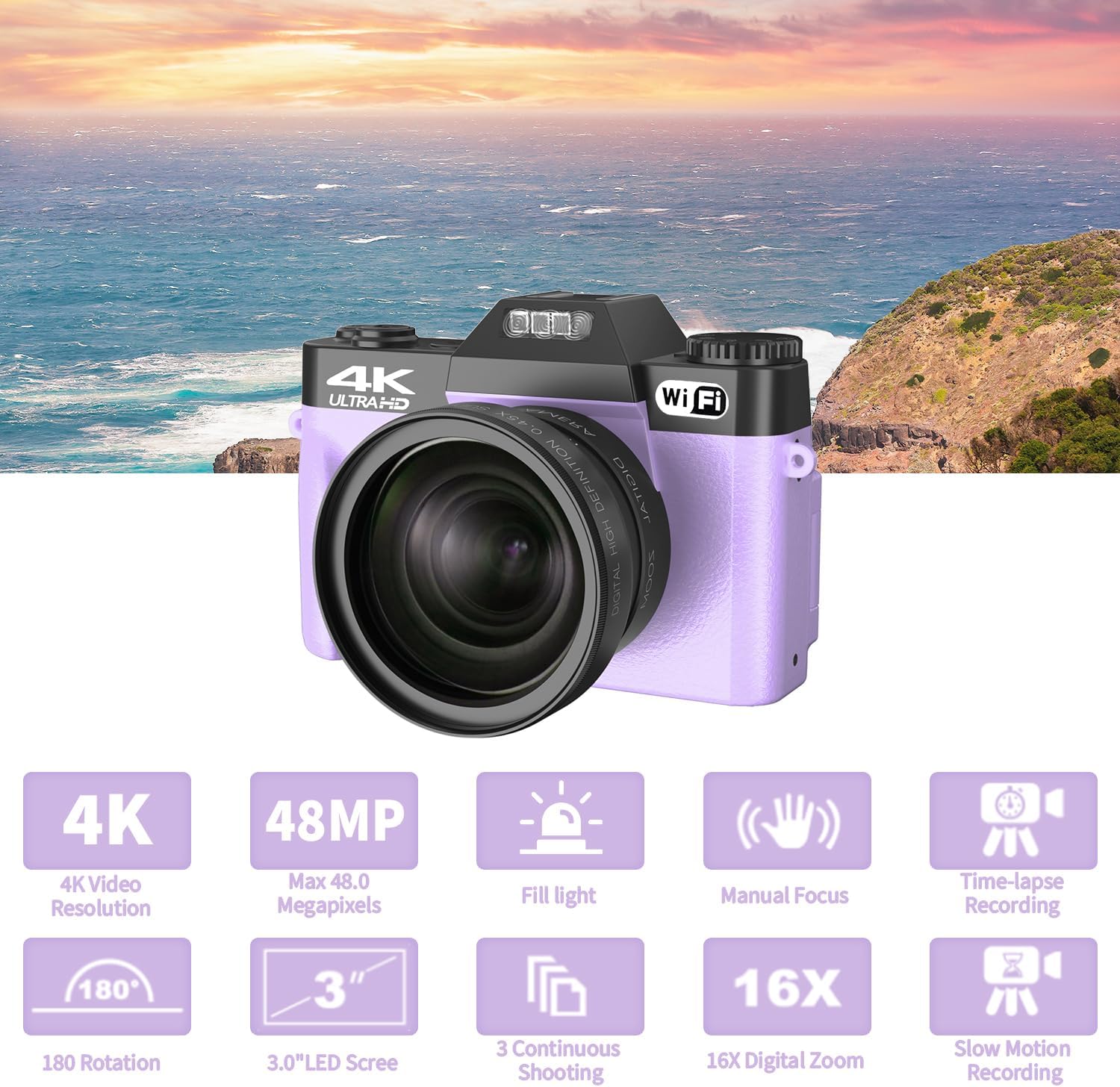【Camera for Photography and Video】This digital camera offers 4K video, 48MP photos, 16X zoom, video pause, loop recording, silent recording, and a self-timer. The upgraded chip ensures higher-definition and realistic images, making it a perfect gift for loved ones