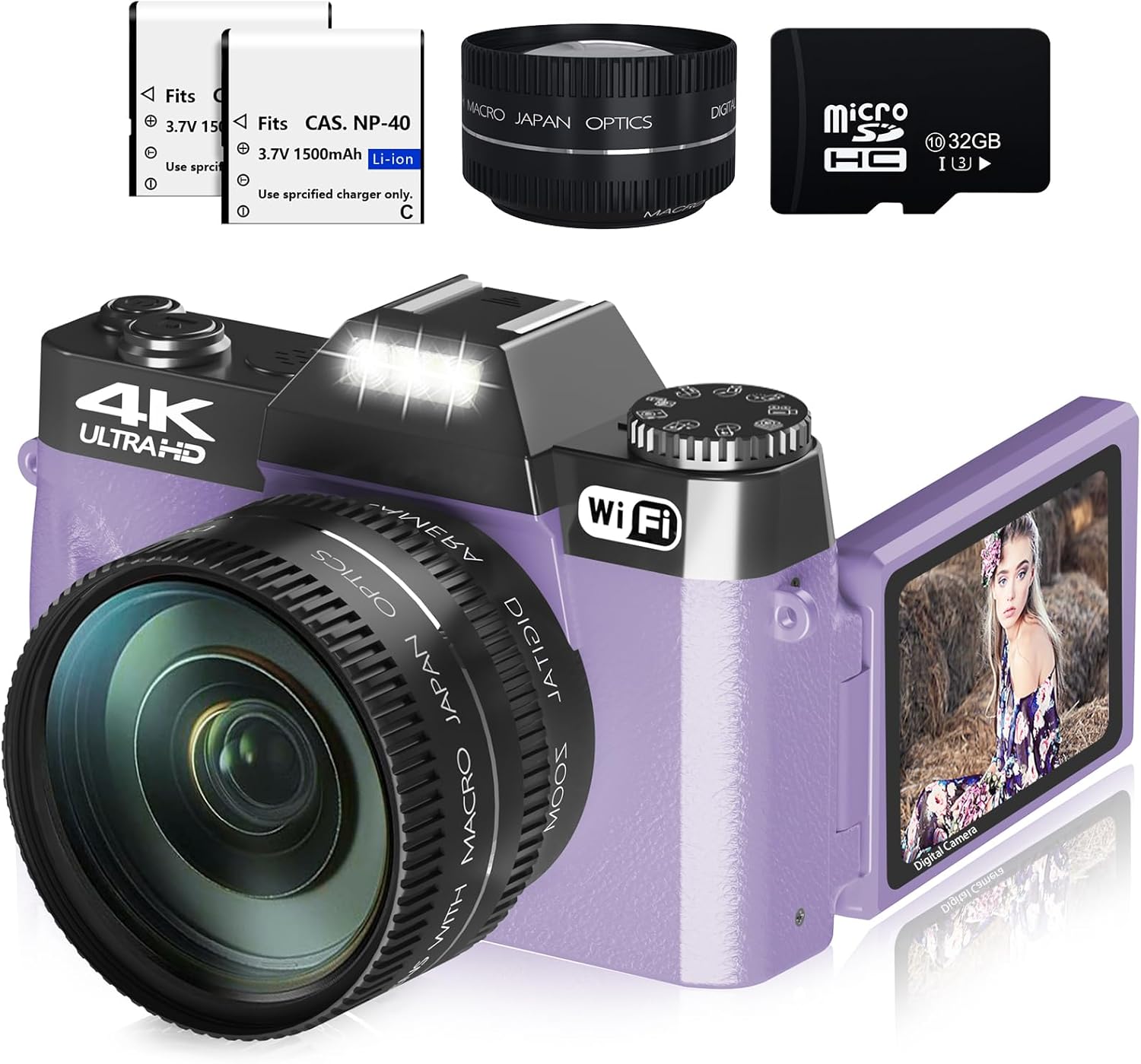 Be the first to review “Digital Cameras for Photography, 4K 56MP Vlogging Camera 16X Digital Zoom Manual Focus Rechargeable Students Compact Camera with 52mm Wide-Angle & Macro Lens, 32G TF Card and 2 Batteries(Purple)”