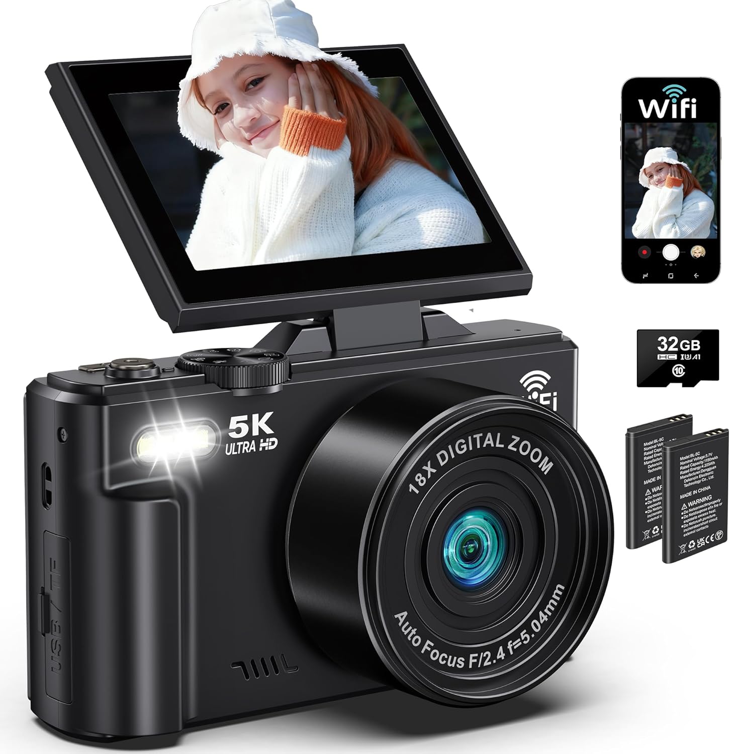 📺【3” 180° Flip Screen & Built-In Light】The digital camera with flip screen comes with a 3.0-inch IPS 180° UHD screen, making it perfect for selfies, vlogs, and capturing creative angles. This wifi camera also has a built-in high-brightness fill light, ensuring clear and bright shots whether you’re shooting at night, taking indoor selfies, or using it as a live streaming camera. The built-in filters enhance your creative photography journey.