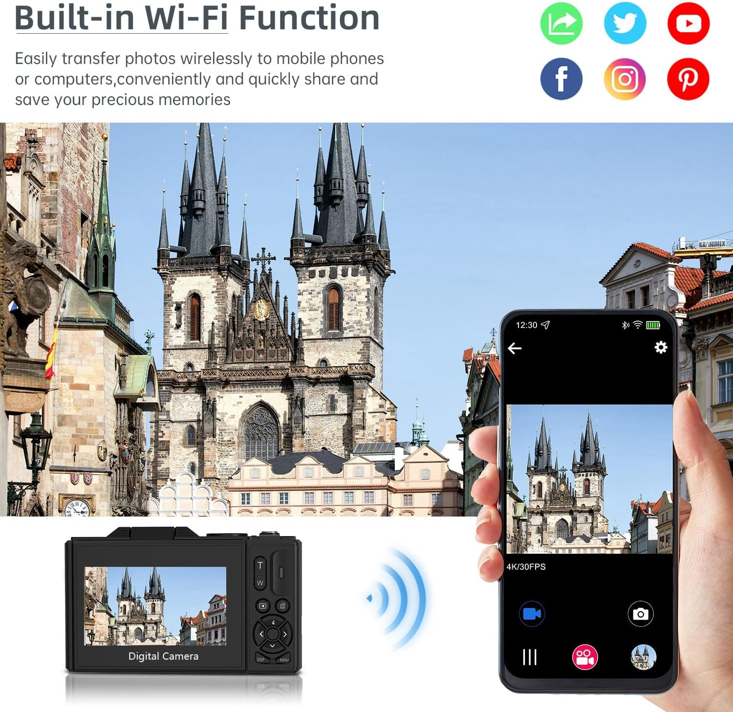 【18X Digital Zoom & 23 Filter Effects】 Equipped with a 18X Digital zoom, this camera allows you to shoot both close-ups and distant subjects with clear, distortion-free images. Its versatility makes it perfect for travel photography and portrait photography. Additionally, it comes with 23 built-in filter effects, so can easily enhance their photos with black and white, vintage, or artistic styles, offering a fun way to experiment with different looks without complicated editing