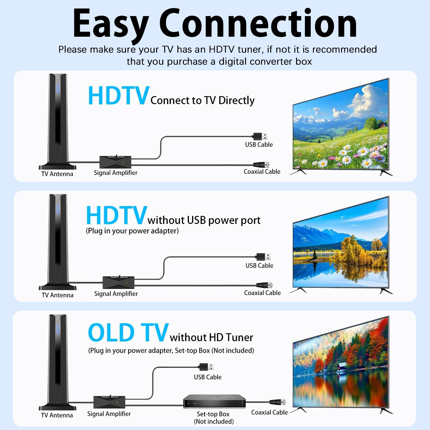 With this tv antenna, you will really enjoy the crystal clear pictures! No matter where you place the tv antennas in your home, it will receive a HDTV shows all the time.