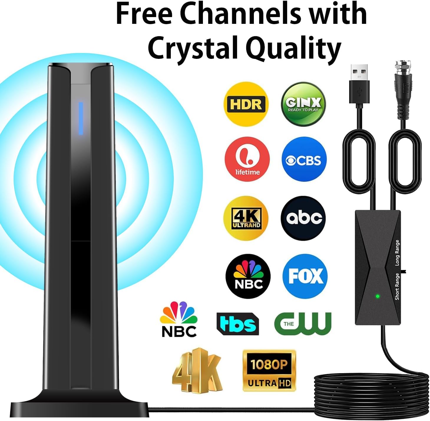 Enjoy Clear HDTV Channels Free:With this tv antenna for smart tv indoor, you will never pay for your cable again, enjoy crystal FULL HD channels like ABC, CBS, NBC, PBC, CW, Fox,Univision and so much more! Access all news, sports, sitcoms and kids programs at home at easily. Make the smart choice with TV Antennas for cost-effective and high-quality television entertainment. Free yourself from cables and enjoy these free channels with our tv antenna for smart tv indoor, without worrying about the crazy monthly costs of cable.