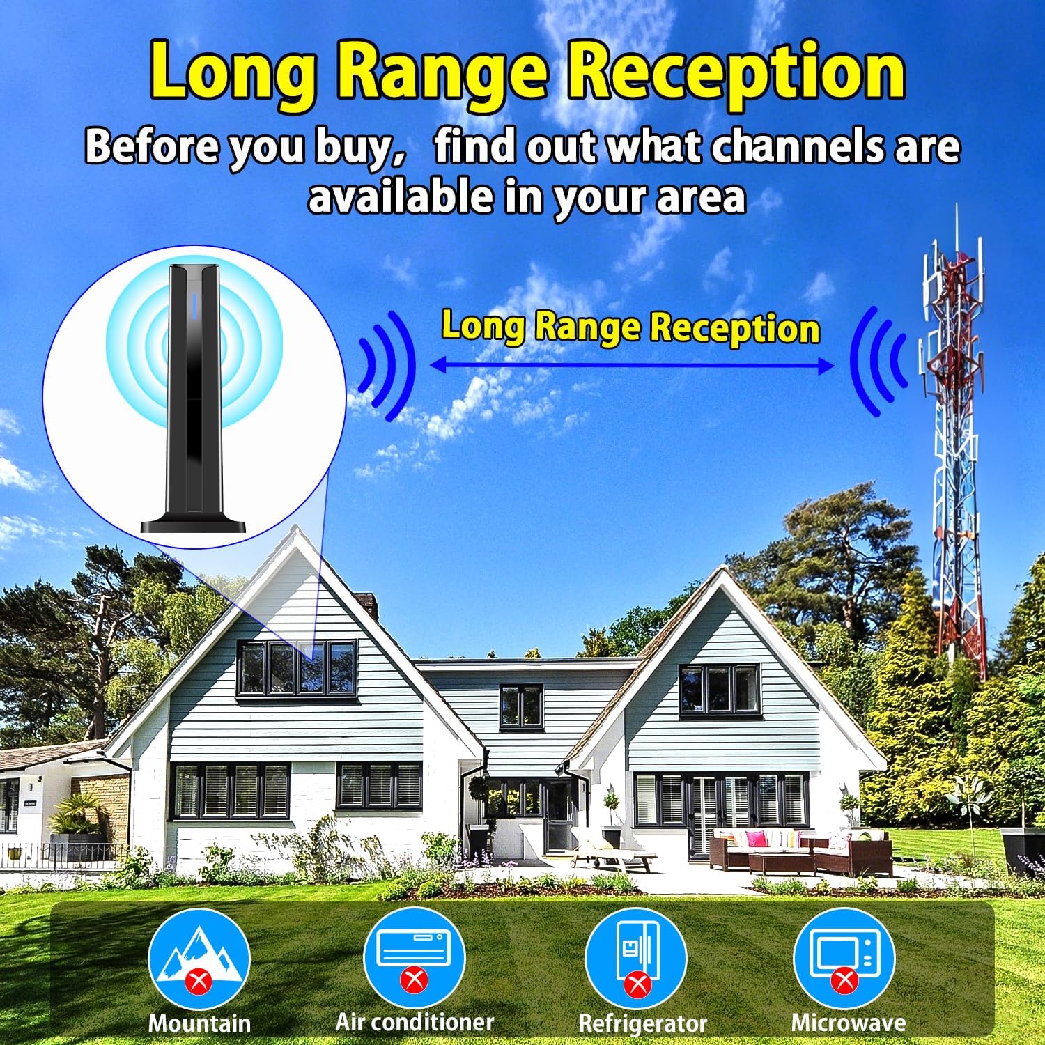 360°& Long Range Reception:The 2025 Upgraded tv antenna indoor adopts upgraded Smart IC Chip, which can receive signals 360° and filter out cellular and FM signals,receives TV broadcasts including 4K,UHD and 1080P HDTV for highest-quality picture and sound. Compared to other tv antenna for local channels that can only receive signals in one direction, this digital antenna for smart tv indoor can be positioned virtually anywhere in your home. TV antenna indoor captures signals from all directions, and its constant scanning function detects new channels as they are broadcast