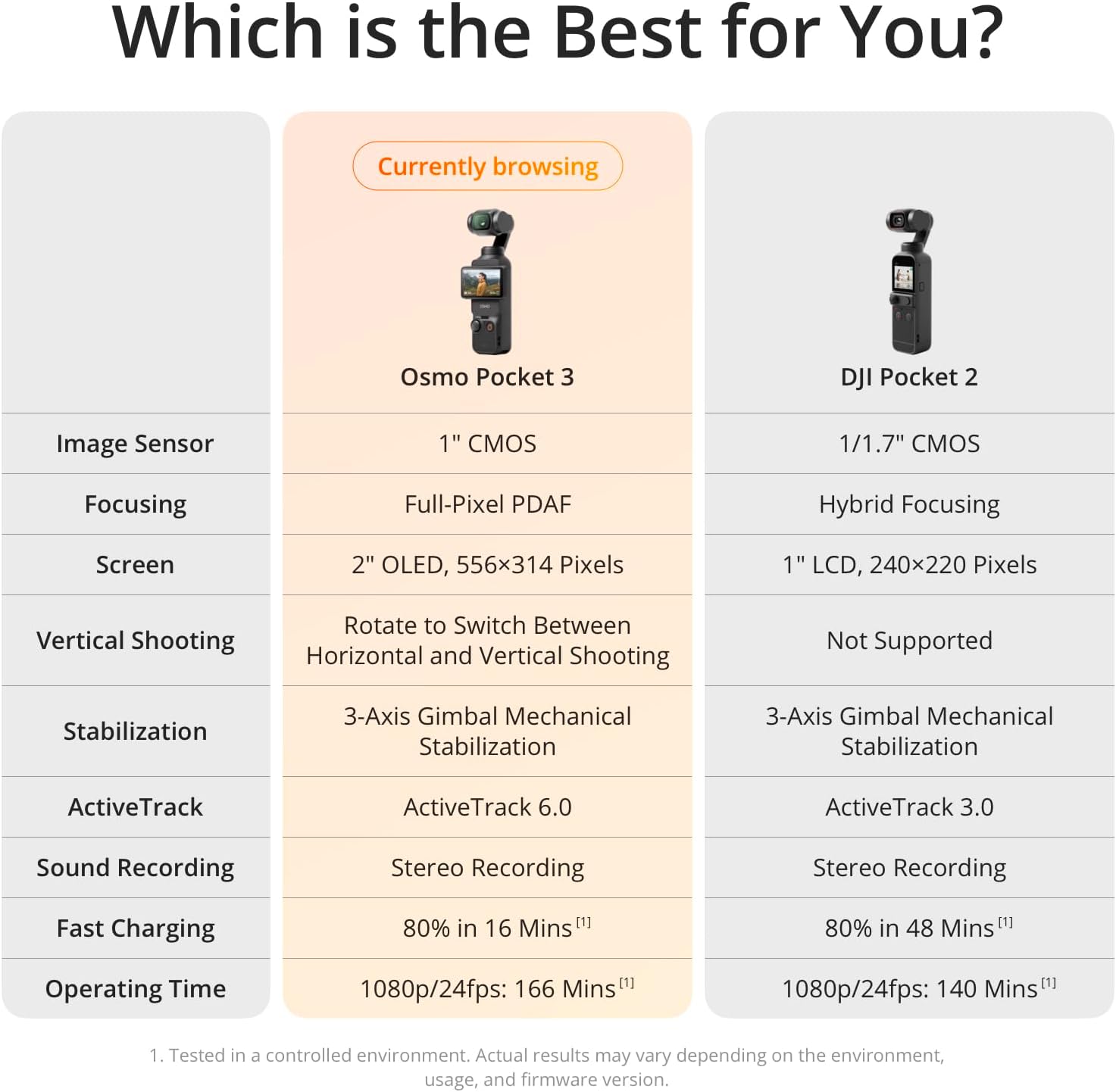 -Osmo Pocket 3 is the standard option; it includes the pocket gimbal, protective cover, wrist strap, handle with 1/4″ thread, and more to help you get started quickly.