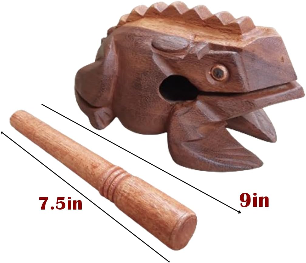 Extra Large 9 Wood Frog Guiro Rasp Percussion Instrument ?? These croaking frogs are musical instruments that mimic the same croak a frog would make. Carved from a solid piece of wood for best sound. ?? Not only percussion musical instrument but also a feng shui lucky craft wooden frogs. ?? Using drum stick around her back from the bottom gently scrape can make a plifelike frogs cries , meant money and treasures will be plentiful. ?? This is a great decoration for your home or work office. It doesn’t take much space and it is a natural wood look blend in with any office. ?? Adopt high quality mango wood, special craft processing, plifelike frogs cries, entire wood carved. ?? Great gift for children ,friends,home , office etc.