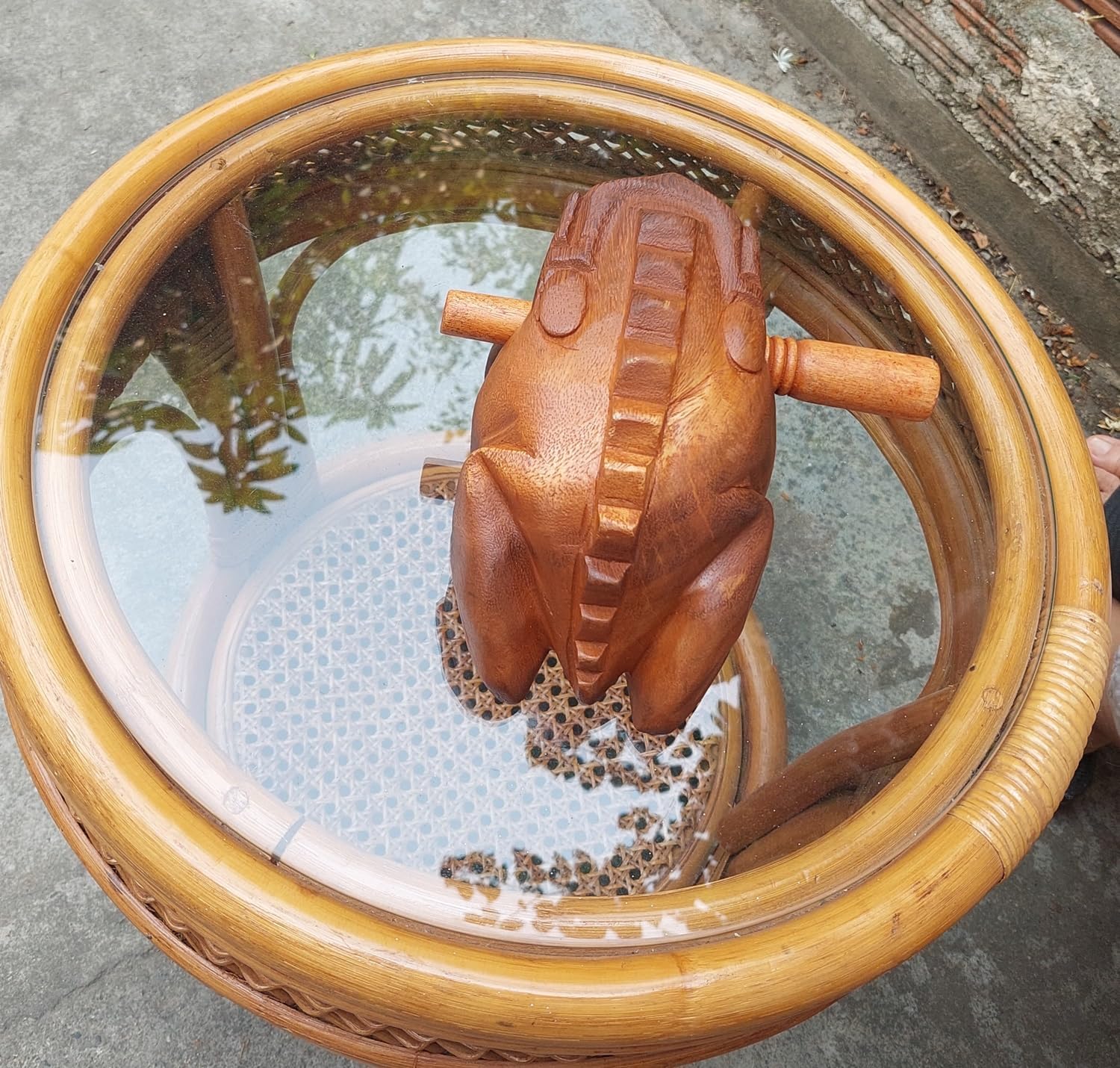 Not only percussion musical instrument but also a feng shui lucky craft wooden frogs home office decoration.