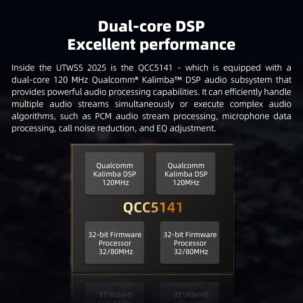 The UTWS5 2025 integrates a miniature wireless charging coil within a millimeter-scale design, upgrading the ear hook to a wireless charging solution. This completely solves the issue of oxidation on traditional charging contacts, significantly enhancing the durability of the ear hook, making it resistant to sweat, and allowing for carefree listening.