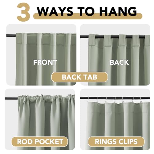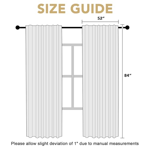 MULTIPLE HANGING: Sold per pair, including 2 window panels – Panel measures: 52 x 84 – inches | Set measures: 104 x 84 – inches, with 3 curtain top hanging options (Back tab & Rod pocket & Pleated) for your personalized style. Each panel sewn with 4″ rod pocket (7 back loops), 2″ bottom hem and 0.8″ side hem, specialized fitting the curtain rods up to 3″