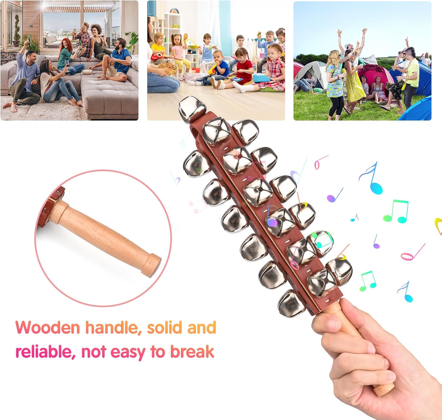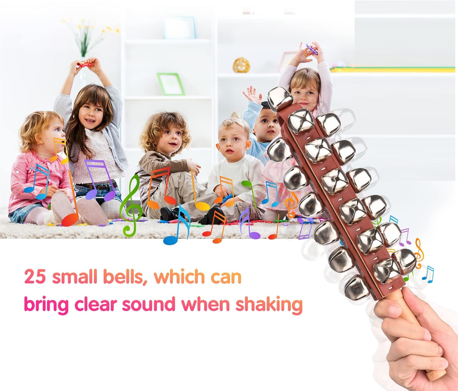 1. 25 small bells: The hand bell is designed with 25 small bells, which can bring a clear sound when shaken, creating more joyful for Christmas and parties.