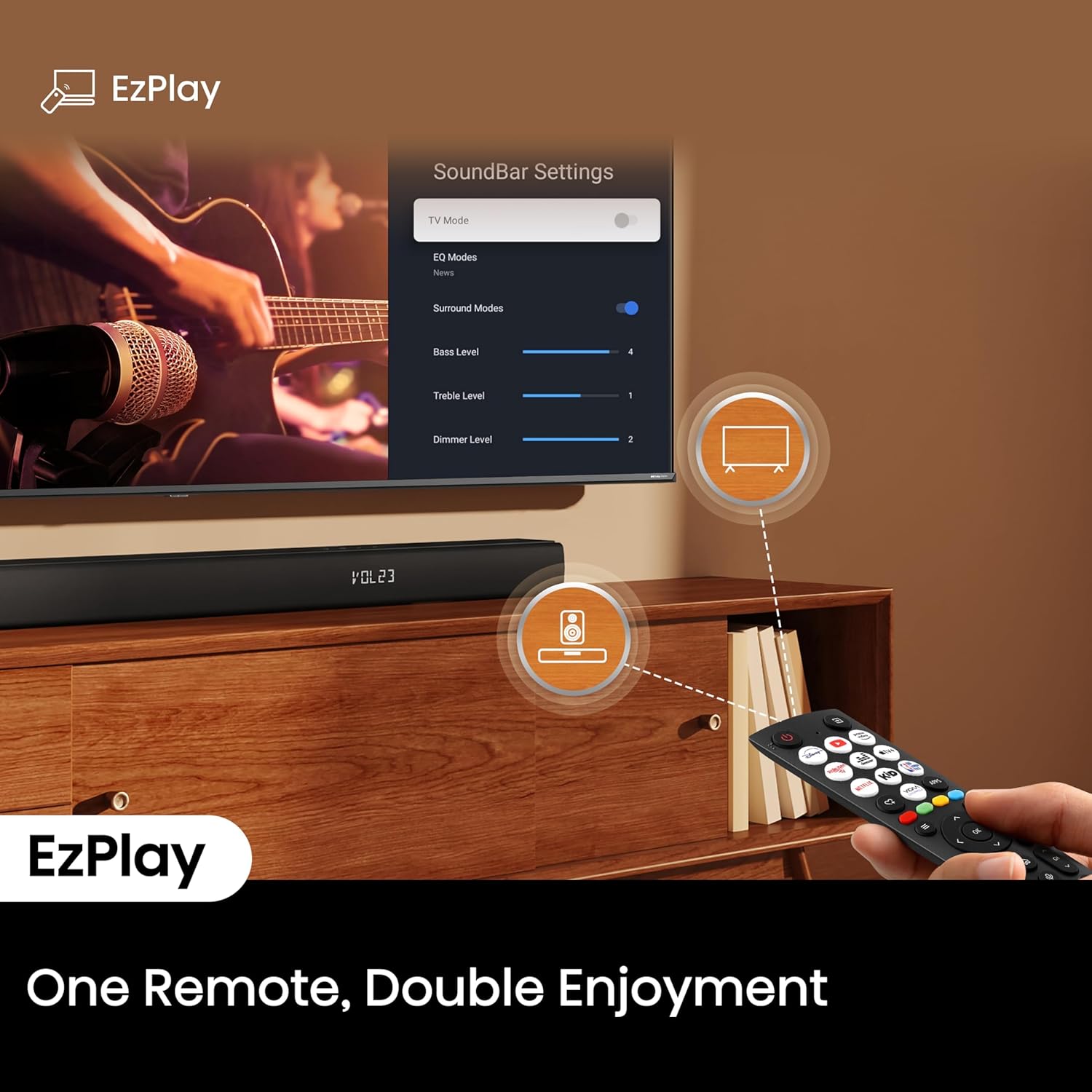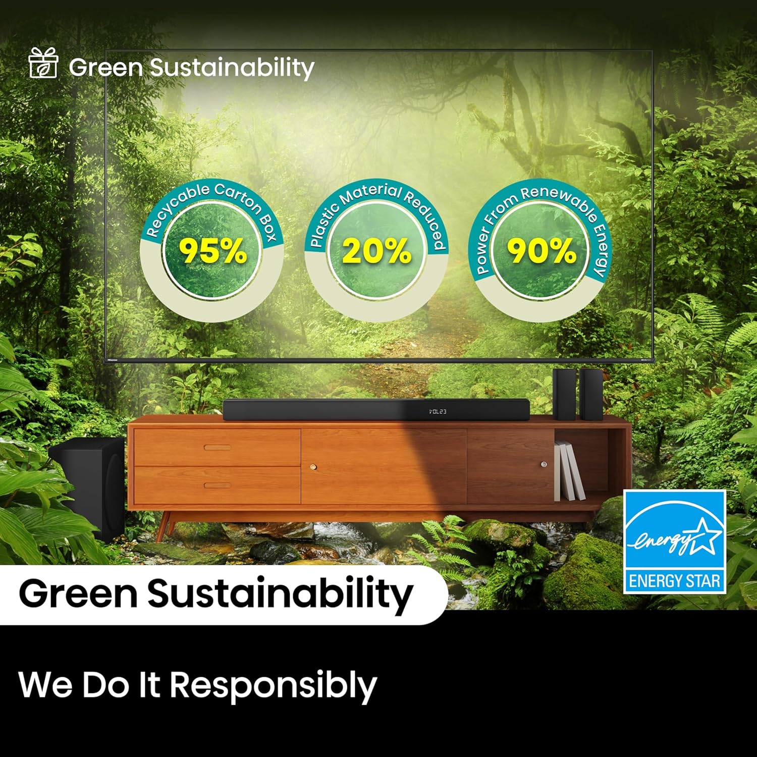 TV Mode: With TV mode technology, when paired with Hisense TV you could enjoy the full potential of your TV’s sound engine through the Soundbar speakers for immersive audio enhancements.