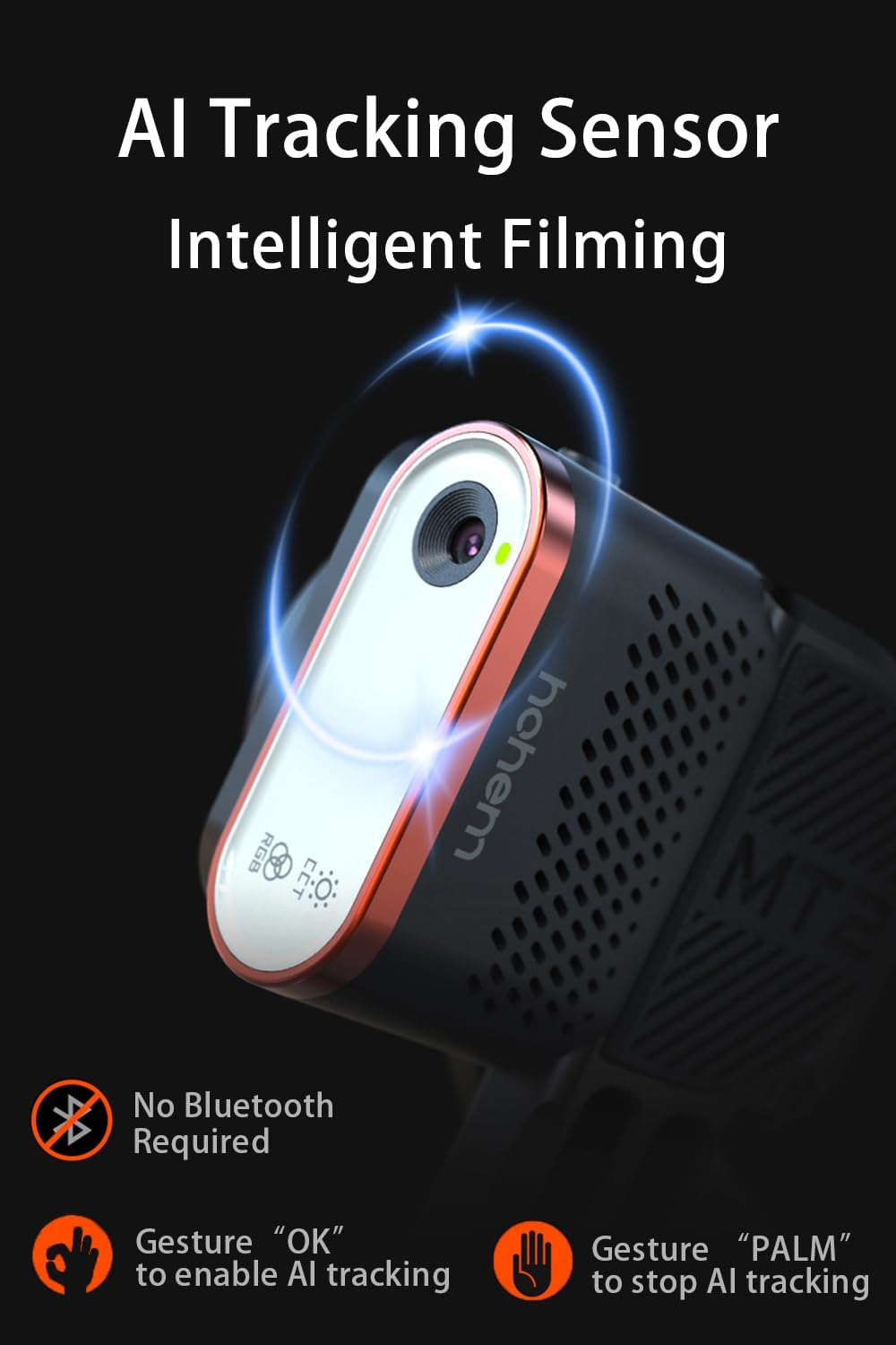 【Magnetic AI Tracker, Intelligent Filming】The breakthrough magnetic Al tracker, combined with CCT/RGB fill light, is designed to achieve Al tracking independently without the need for Bluetooth connection or any apps. Take control of your framing by using simple gestures.