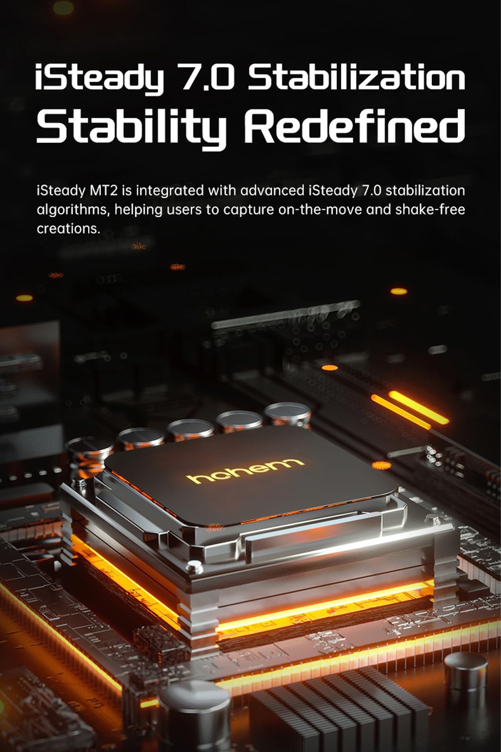 【Push Your Creativity to the Limits】Not Just PF, PTF, POV, L and Sport Mode, the upgraded 360° infinite spin shoot is activated with just three button presses. iSteady MT2 is integrated with advanced iSteady 7.0 stabilization algorithms, helping users to capture on-the-move and shake-free creations.
