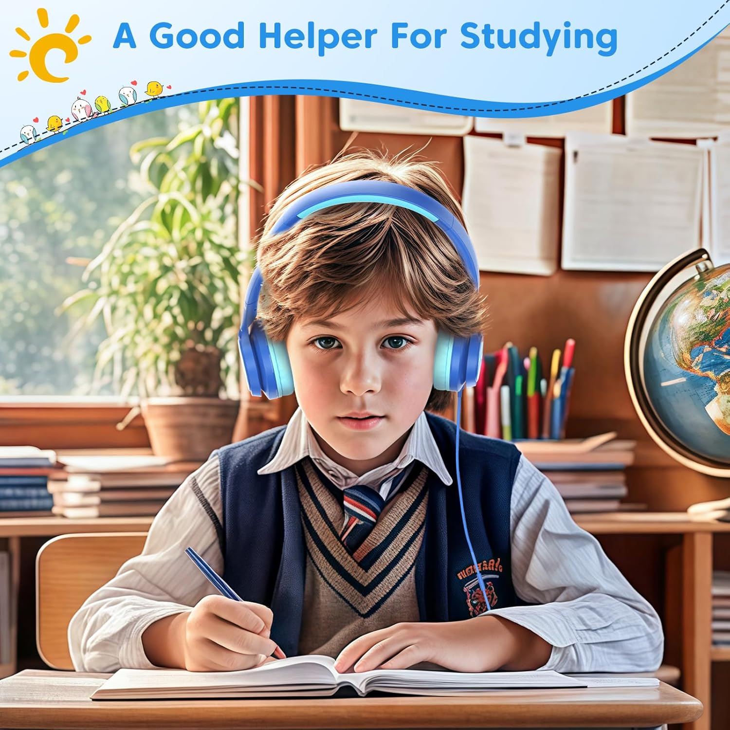 ✅ 【CHILD-FRIENDLY COMFORT】Adjustable headband and soft cushioned ear cups fit kids ages 5-12 comfortably, even during long study sessions or family trips.