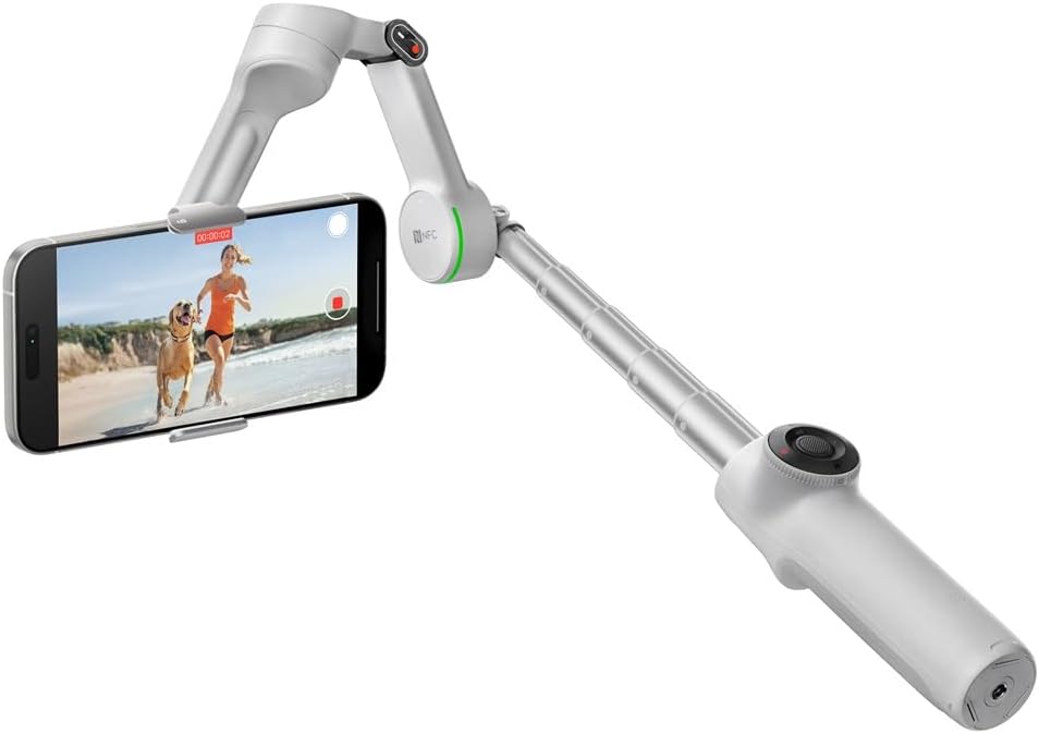 The updated Flow 2 Pro Smartphone Gimbal Stabilizer from Insta360 offers an all-in-one solution for capturing and stabilizing smartphone footage. With 1-tap pairing, native iOS tracking, a 10-hour battery life, and an integrated ring light that indicates active tracking, it’s designed for seamless functionality. The magnetic phone clamp securely holds smartphones 2.5 to 3.3 inches wide. Plus, the built-in 8.3-inch selfie stick and tripod legs eliminate the need for extra mounting accessories.