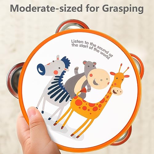 【Musical Instrument】This 6 instrument percussion set comes with Marching Drum, Drum Stickers, Maracas, Tambourines, Trumpet, Flute and Harmonica.