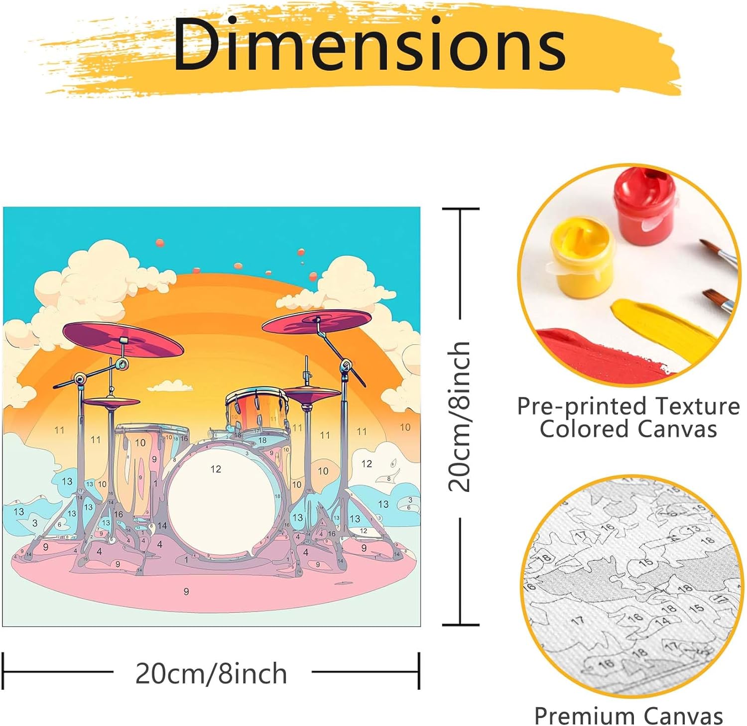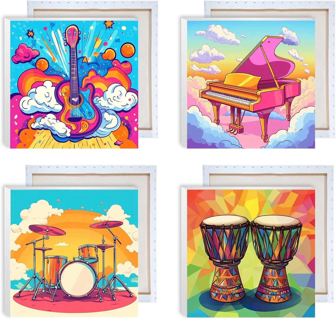Kaliosy 4 Pack Framed Paint by Numbers Kits for Adults Musical Instruments, Oil Painting Guitar Piano Drums Pre Drawn Canvas Drawing with Paintbrushes Acrylic Beginner Wall Home Decoration 8×8 inch